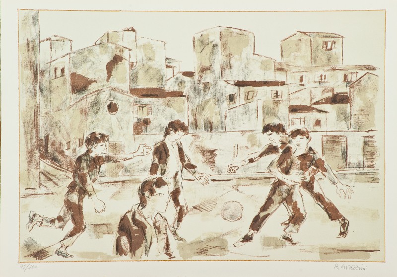 Renzo Grazzini (Firenze 1912 - 1989) LOTTO UNICO DI DUE OPERE - "Senza titolo", Litografia su carta, cm. 50x70, es. 92/120, firma in basso a destra, tiratura in basso a sinistra; - "Paesaggio", Litografia su carta, cm. 50x70, es. 36/70, firma in basso a destra, tiratura in basso a sinistra.