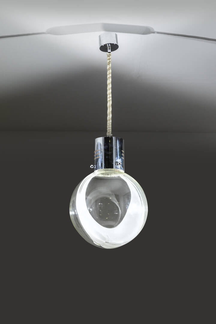 Struttura in acciaio, sfera in vetro soffiato e membrana in vetro lattiginoso.