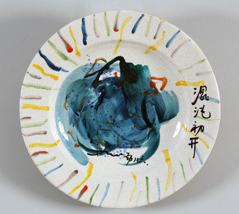 Hsiao Chin 1935 " Fondo marino ", 1982 Smalti su ceramica, cm. d. 50 Firmato al centro Esemplare unico Etichetta Ceramiche Rossicone Milano, sul retro Prov. Collezione Privata