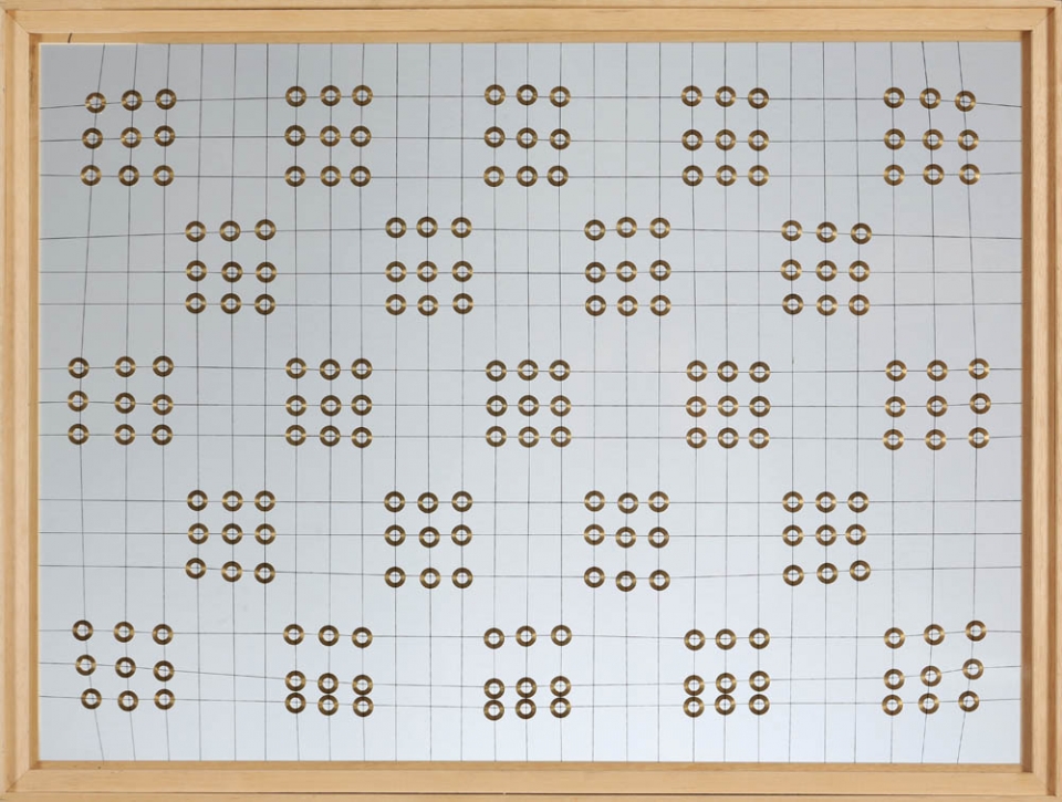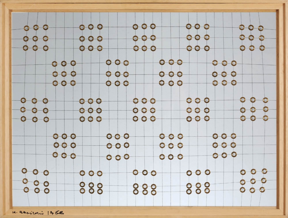 Manfredo Massironi 1937 - 2011 Senza titolo, 1960 Assembalggio, fili cotone, rondelle e legno, cm. 61,5 x 81,5 x 5 Firmato e datato sul retro Autentica dell'artista su fotografia Prov. Collezione Privata