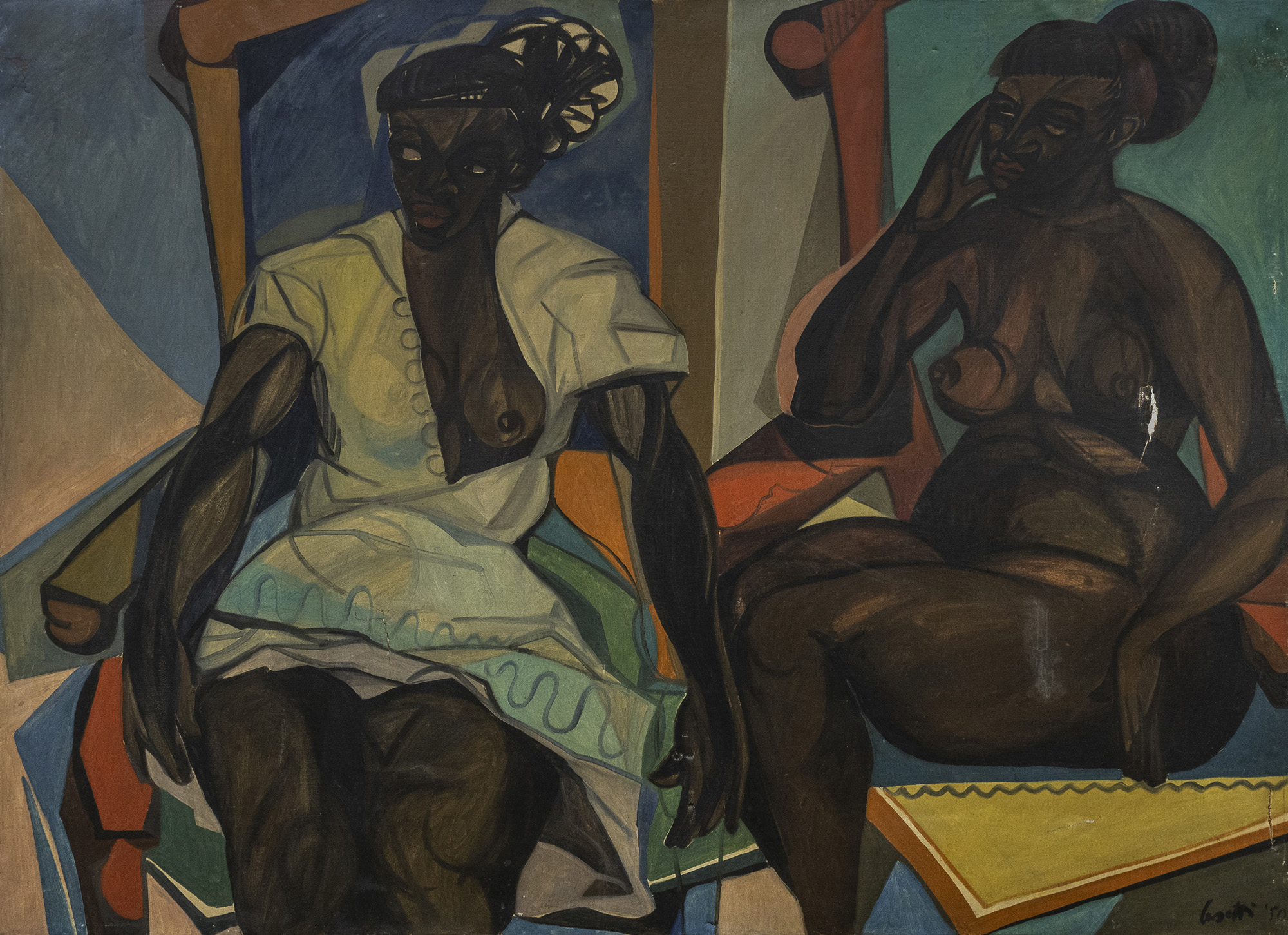 In prima tela. Due restauri rattoppati sulla donna a sinistra, foro evidente nella parte destra, tre piccoli fori in basso al centro