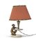 a due ripiani circolari sorretti da figura di donna inginocchiata. Completo di paralume.