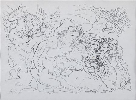 Riproduzione a stampa di disegno a china, cm. 16 x 22,5