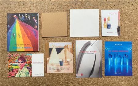 Lotto unico di 8 cataloghi riccamente illustrati editi in occasione di esposizione personali dei seguenti artisti: Giorgio Laveri, Luca Zampetti, Athos Faccincani, Franco Beraldo, Marco Rotelli, Giuseppe Amadio, Robert Carroll e Ugo Nespolo