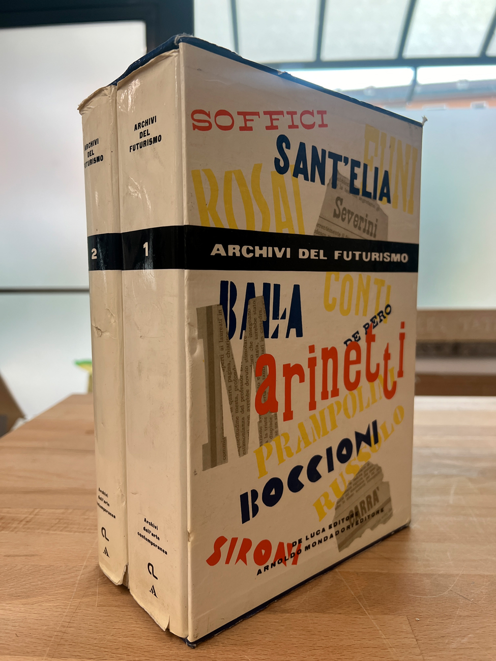 Cofanetto contenente 2 cataloghi riccamente illustrati, editi per la collana 'Archivi dell'arte contemporanea', con documenti raccolti e ordinati da M. Drudi Gambillo e T. Fiori: