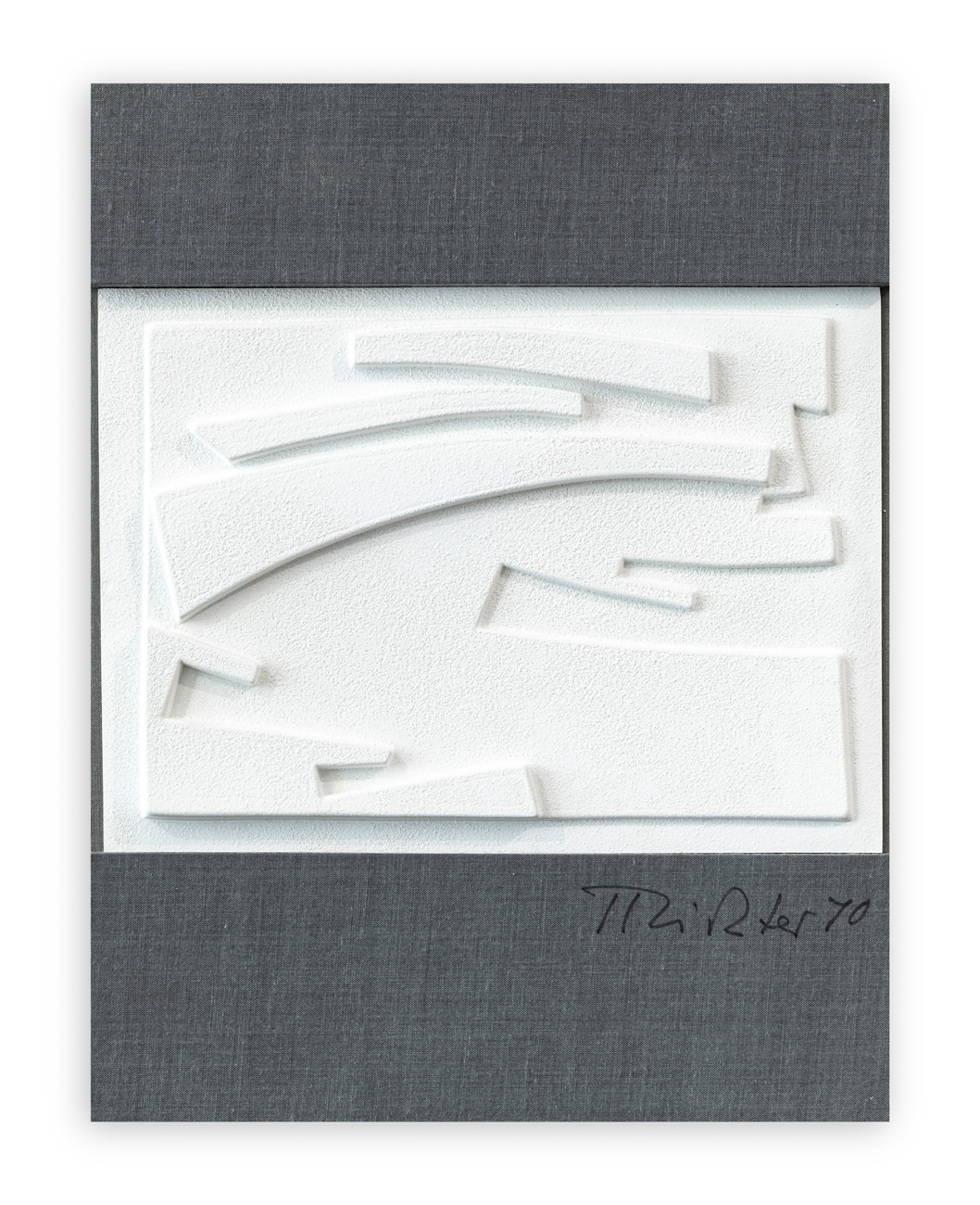 Astuccio telato con multiplo in plastica di Hans Richter recante firma e datazione a pennarello al fronte, contenente al suo interno 6 poesie di Grytzko Mascioni e 6 acqueforti di Hans Richter
