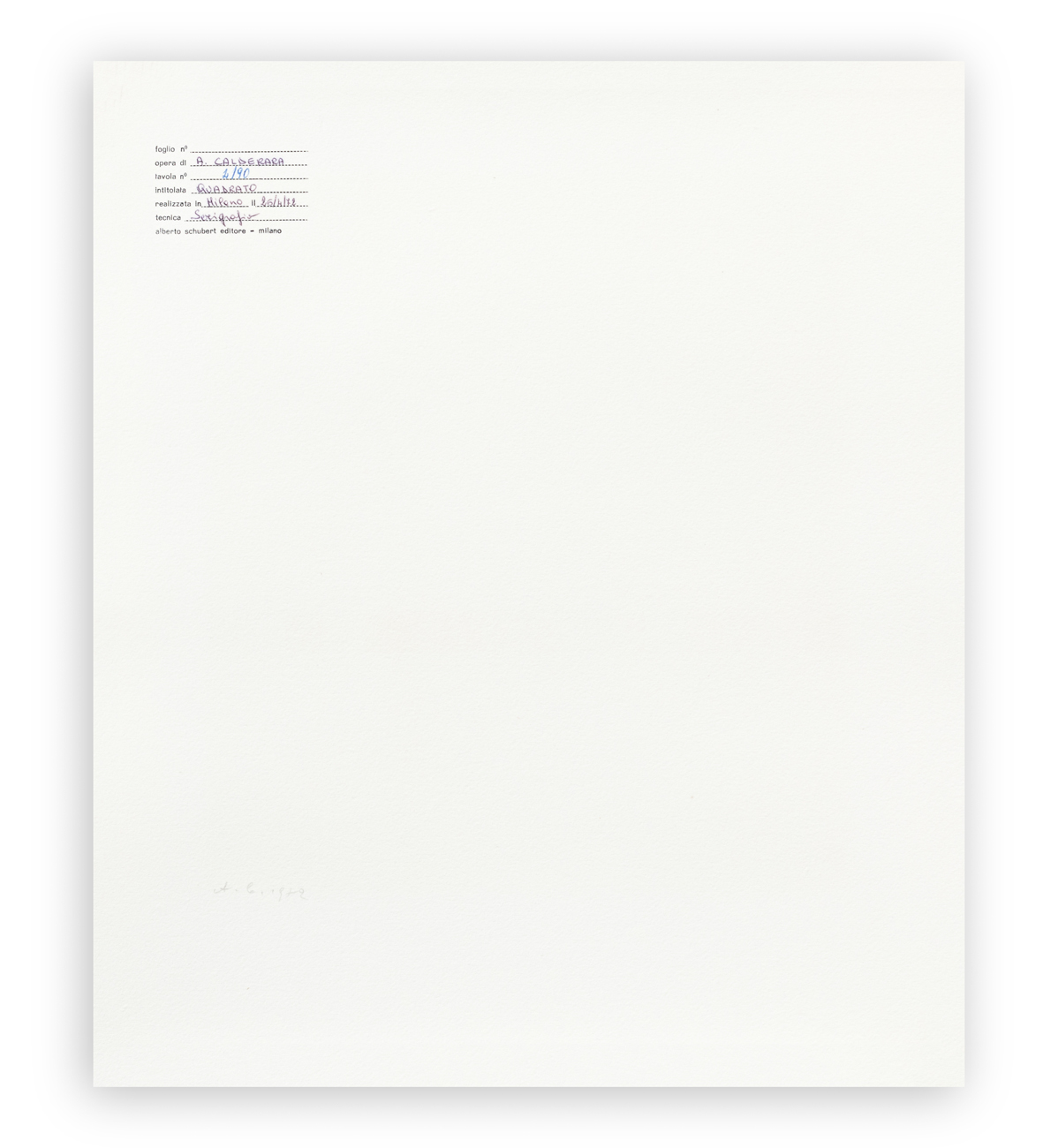 Timbro dell'Editore con caratteristiche tecniche e numerazione (Esemplare 4/90) al retro