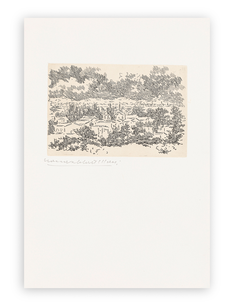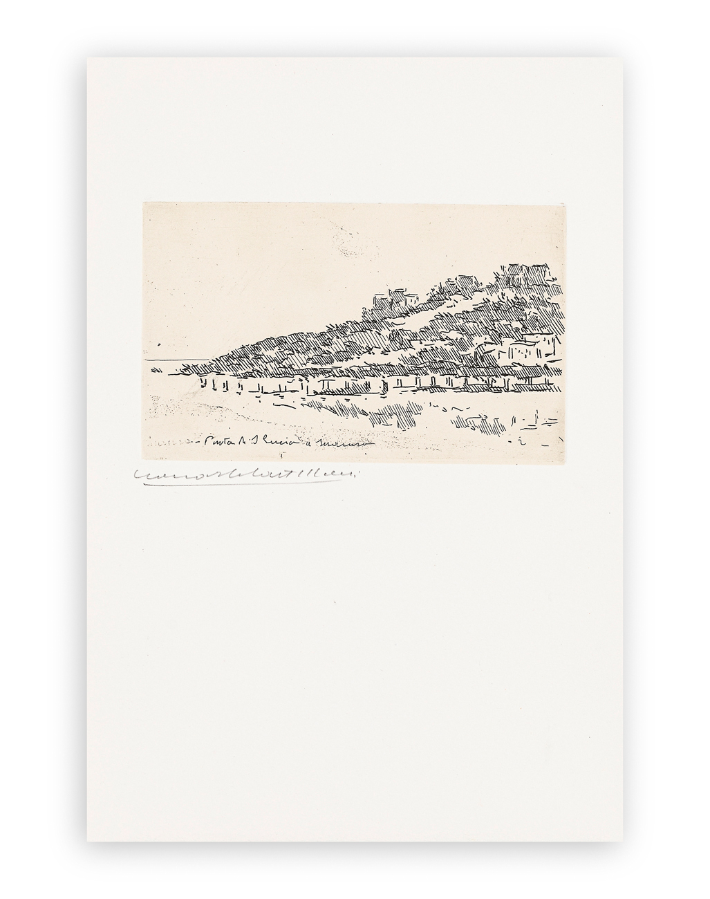 Edizione d'arte contenente un volume recante uno scritto e 5 acqueforti di Leonardo Castellani e un'ulteriore suite con 10 acqueforti sciolte di Leonardo Castellani, ciascuna recante firma a matita al fronte