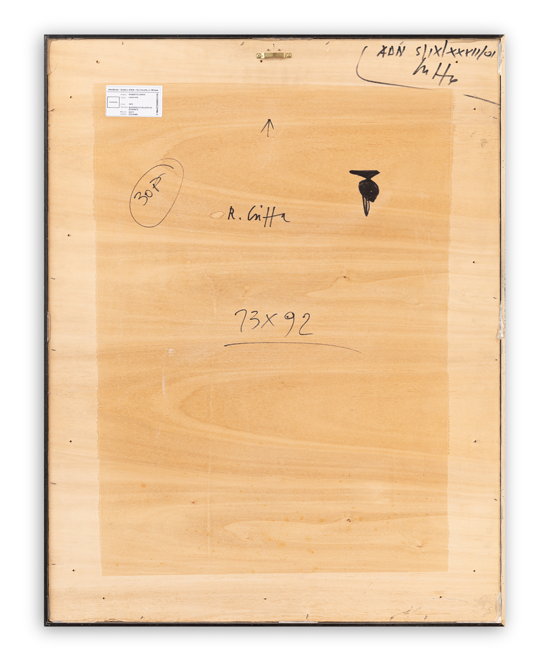 Firma di Roberto Crippa Jr. e numero di archiviazione al retro