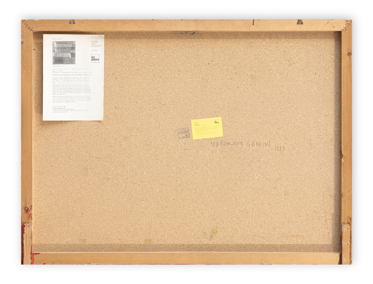 Etichetta e timbro della Galleria Arte Struktura (MI) al retro