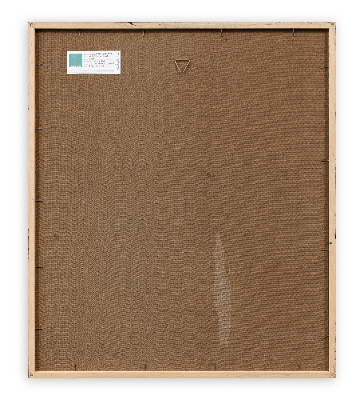 Etichetta della Galleria Maco Arte (PD) con caratteristiche tecniche dell'opera al retro della tavola protettiva