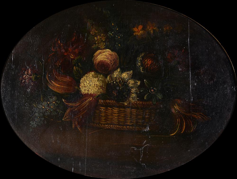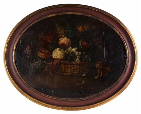 Scuola degli inizi del XX secolo CANESTRA CON FIORI olio su tavola, cm 43,5x56,6