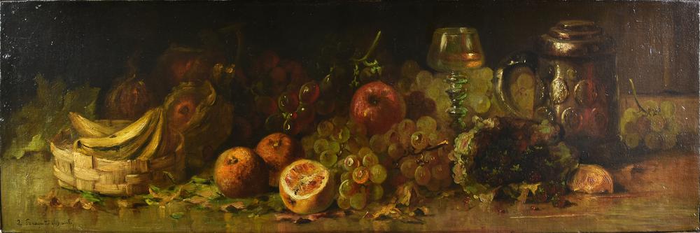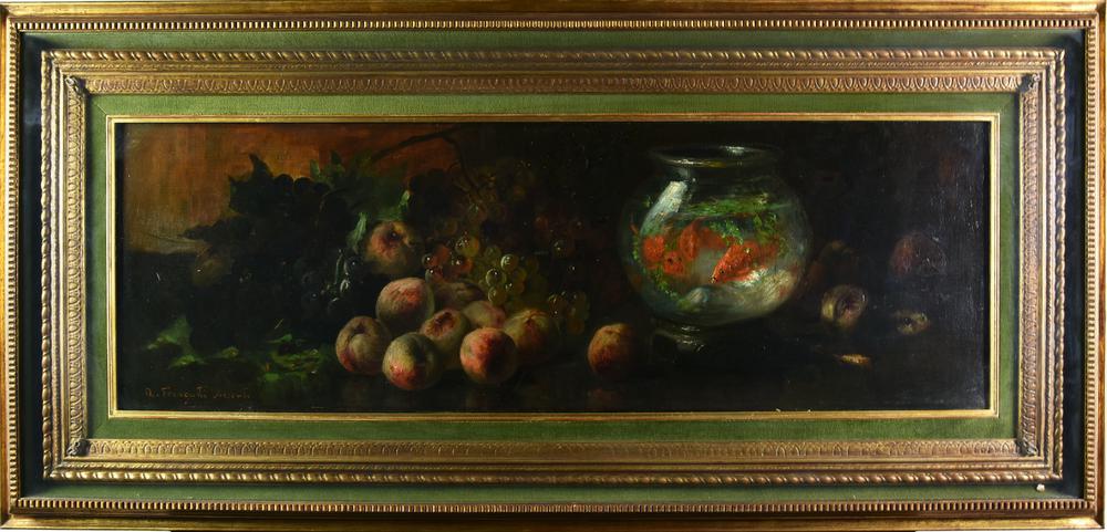Adolfo Feragutti Visconti COPPIA DI NATURE MORTE olio su tela, cm 30x91...