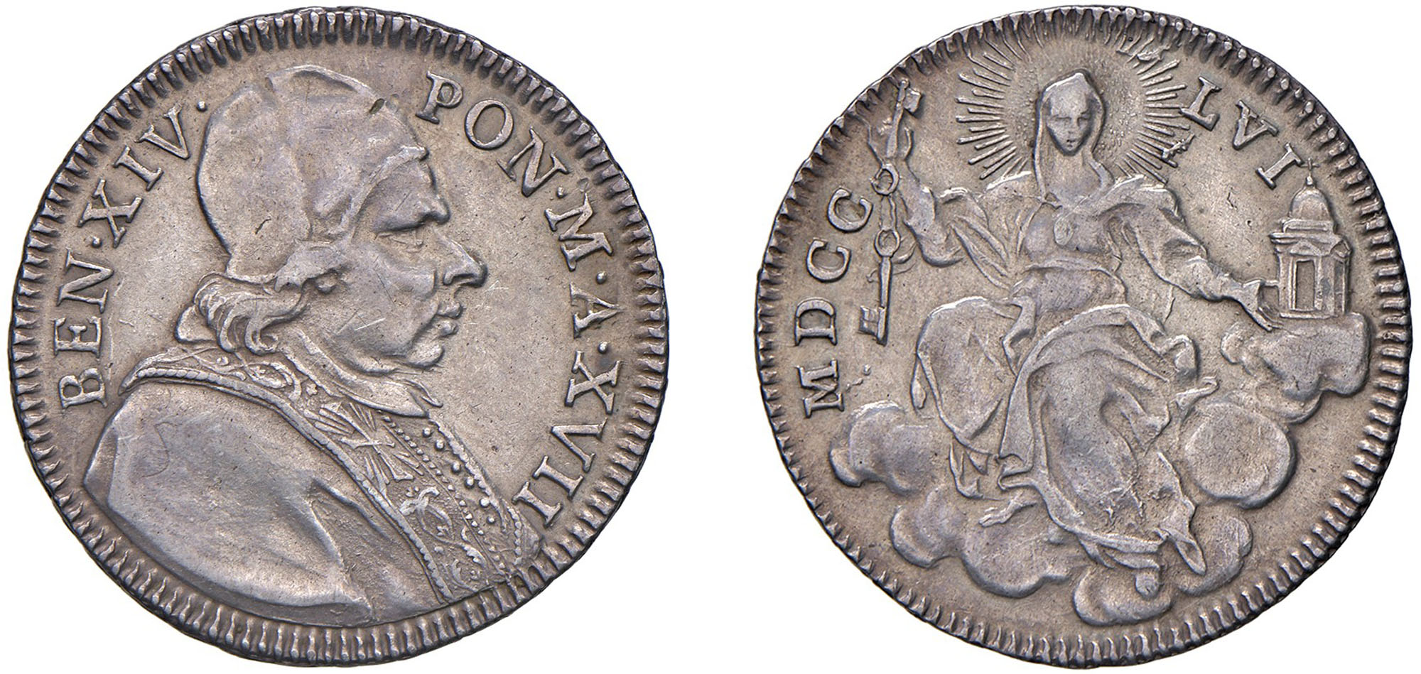 Lot 98 | BENEDETTO XIV, Prospero Lambertini (1740-1758) - Quinto di scudo 1756, an. XVII, Roma