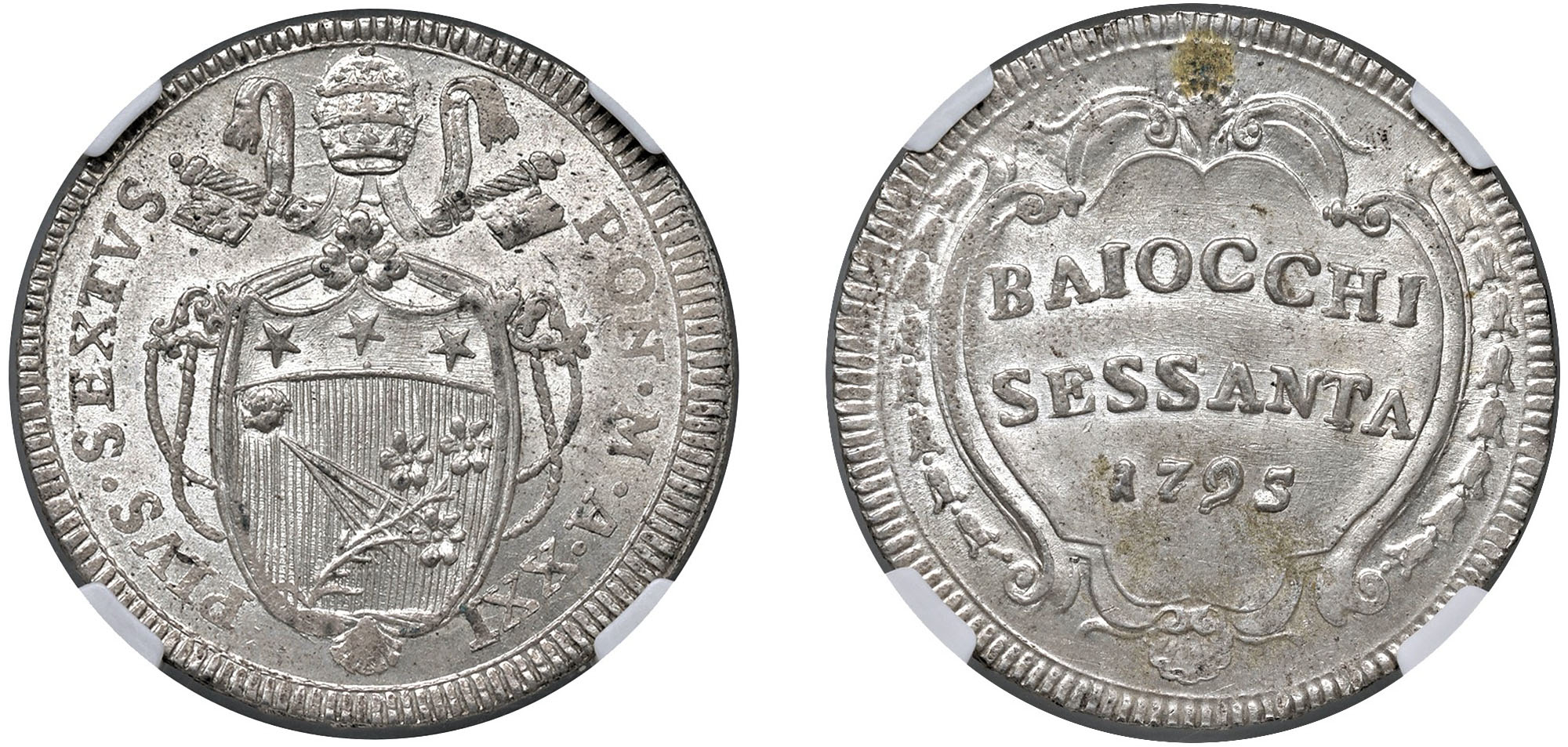 Lot 116 | PIO VI, Giovanni Angelo Braschi (1775-1799) - 60 baiocchi 1795, an. XXI, Roma