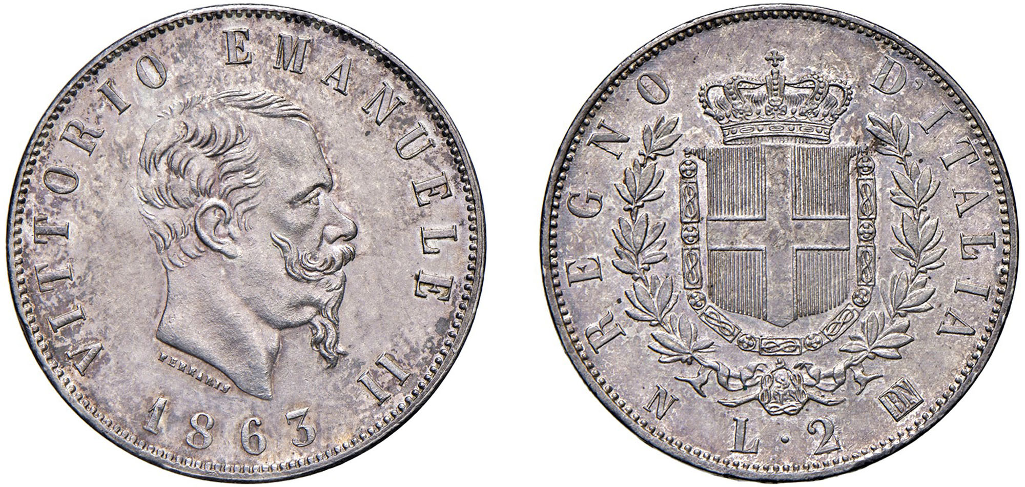 Lot 178 | VITTORIO EMANUELE II (1861-1878) - 2 lire 1863, Napoli