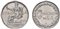 Dritto: Figura di donna rivolta a sinistra, rappresentante l'Italia seduta su tronco di colonna con vittoria alata e ramo di alloro. - Rovescio: Piccolo stemma sabaudo crociato sormontato da corona; al centro, valore affiancato da stemma sabaudo, il tutto circondato da corona di alloro.