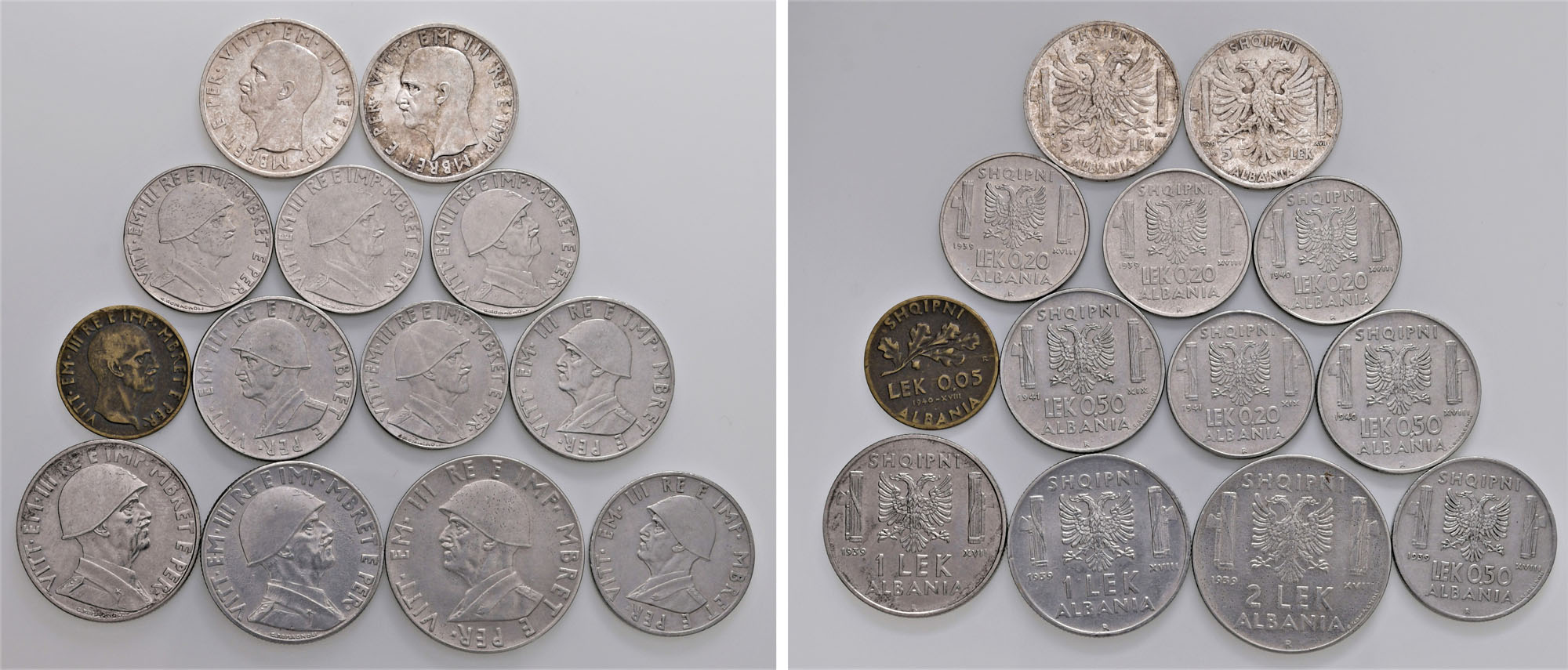 VITTORIO EMANUELE III, Albania (1939-1943) - Lotto multiplo di 13 monete