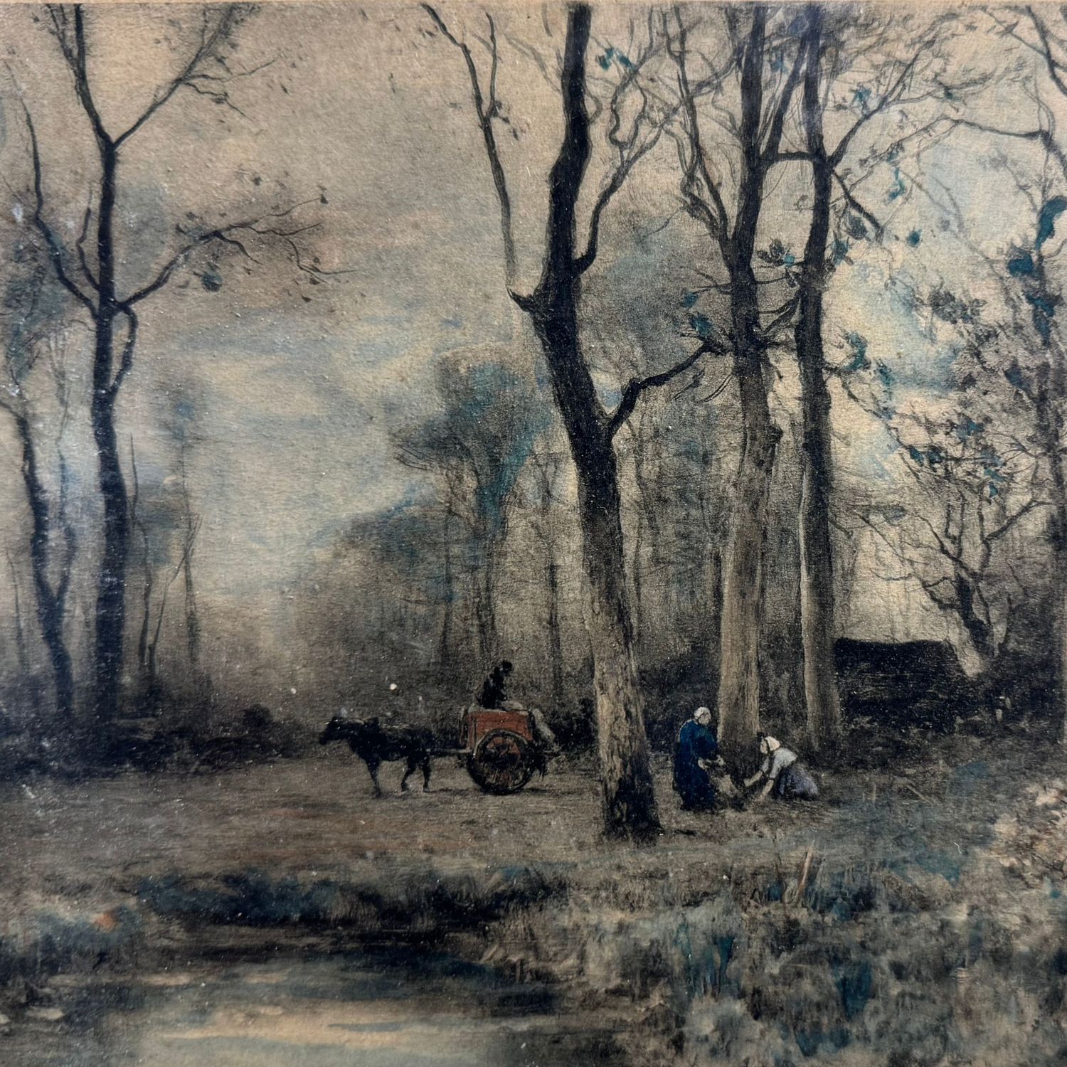 Litografia su carta, periodo XIX secolo scuola Europea raffigurante Paesaggio.