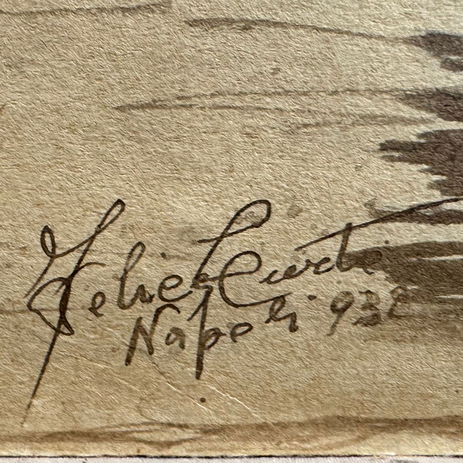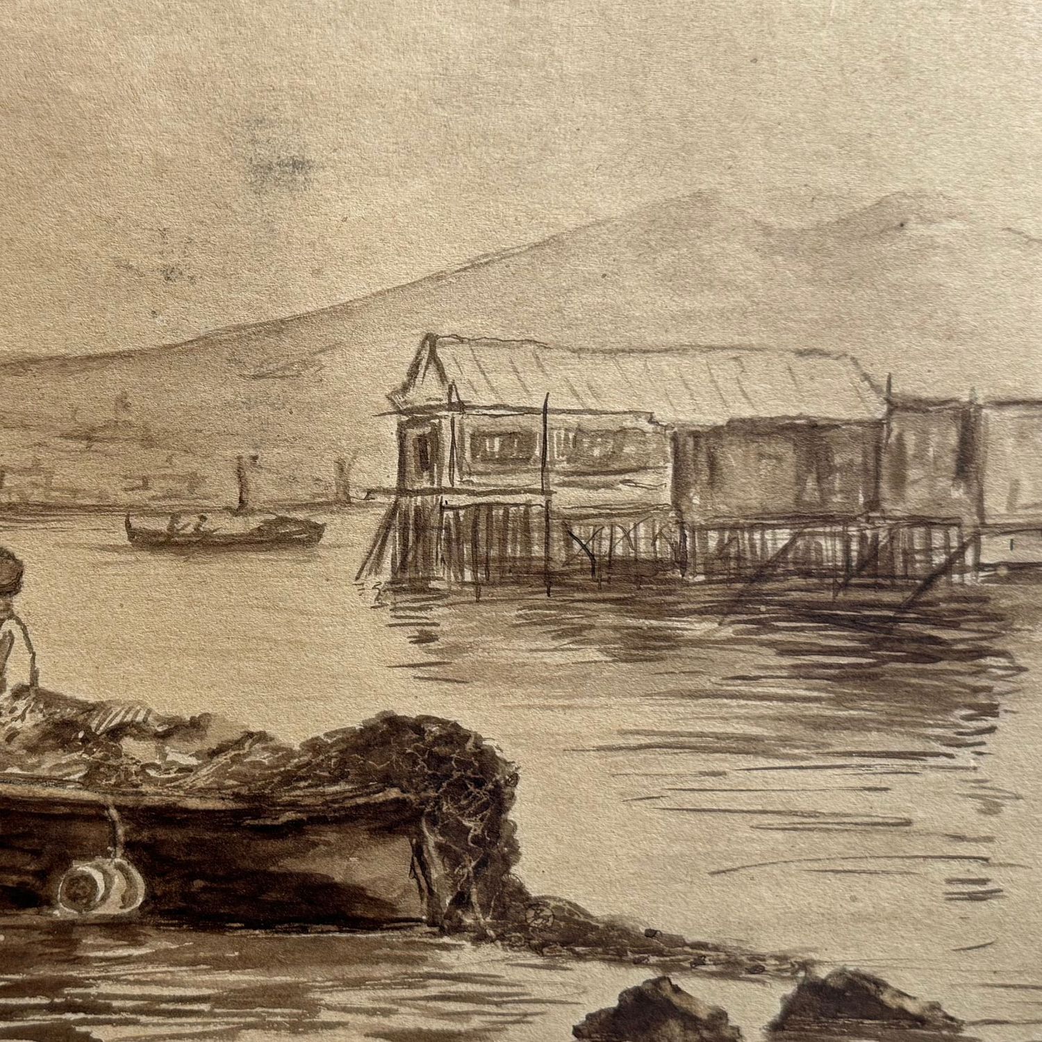 China su cartoncino, periodo 1932 scuola Italiana, raffigurante Pescatori a Napoli.