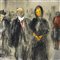 Dipinto tecnica mista su carta, periodo XX secolo scuola Italiana, raffigurante Personaggi.
