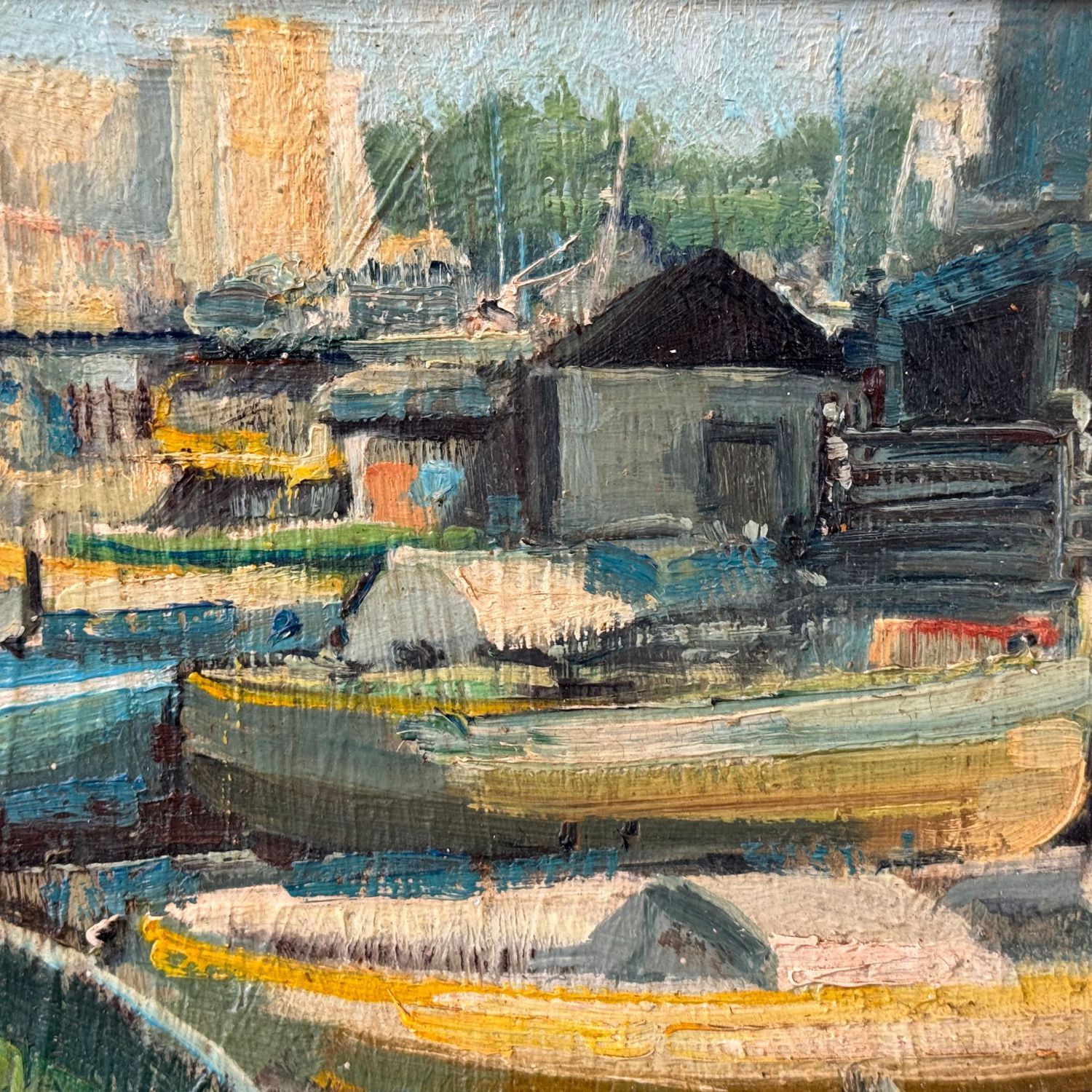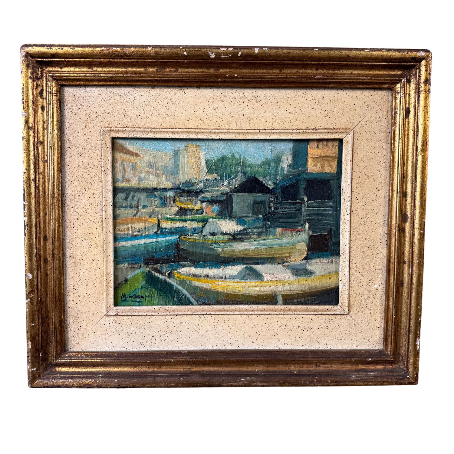 Dipinto olio su pannello, periodo XX secolo scuola Italiana, raffigurante "Il Granatello" a Portici.