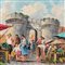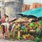 Dipinto olio su tela, periodo XX secolo scuola Italiana, raffigurante Scena di mercatino a Porta Capuana (Napoli)