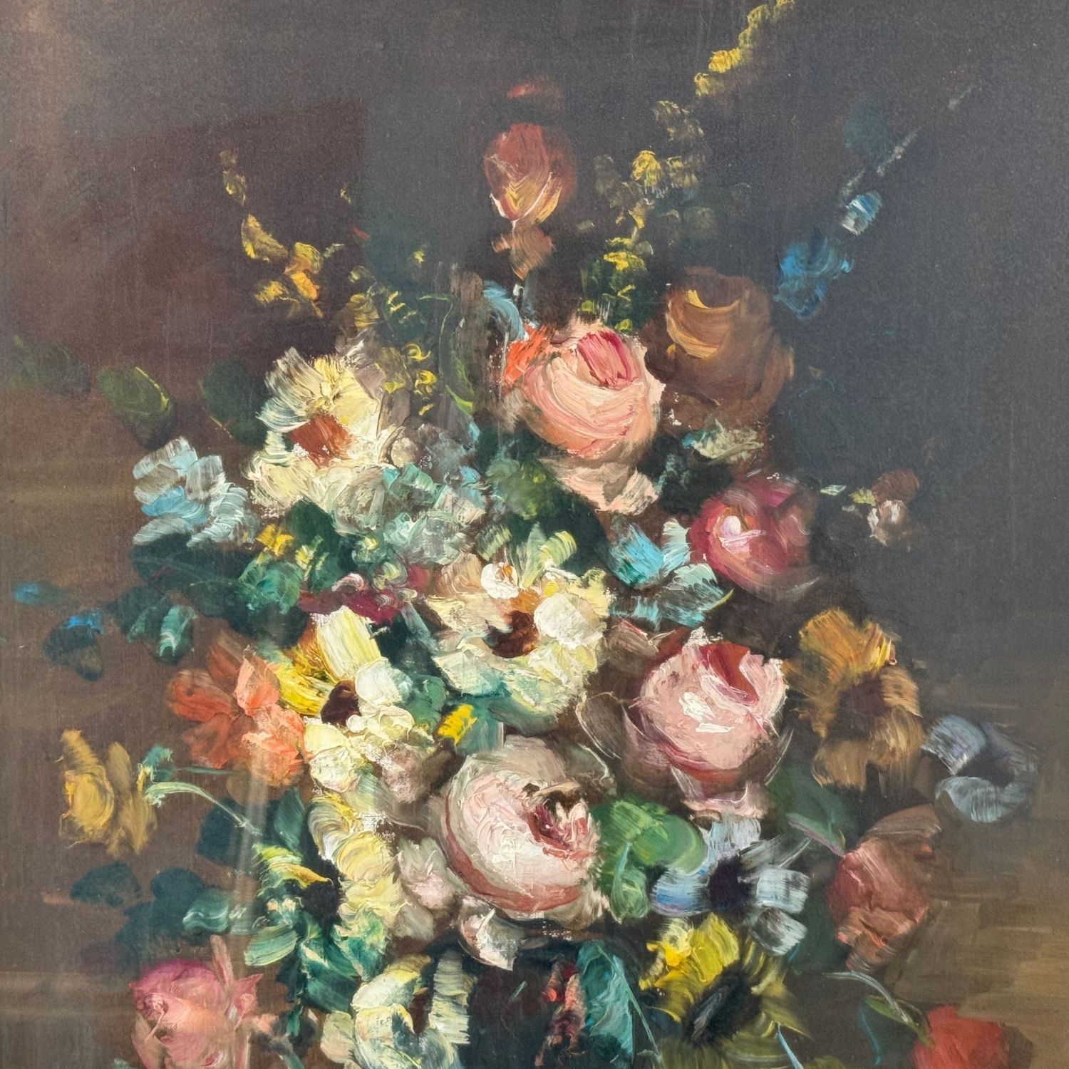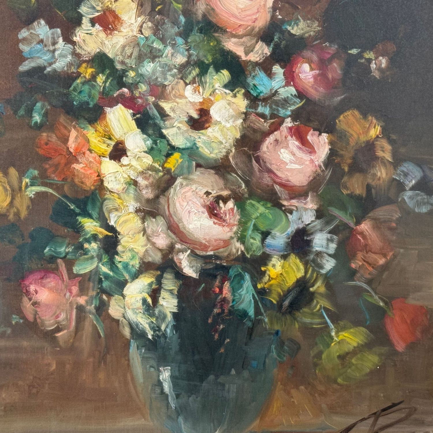 Dipinto olio su tela, periodo XX secolo scuola Italiana, raffigurante Composizione di fiori.