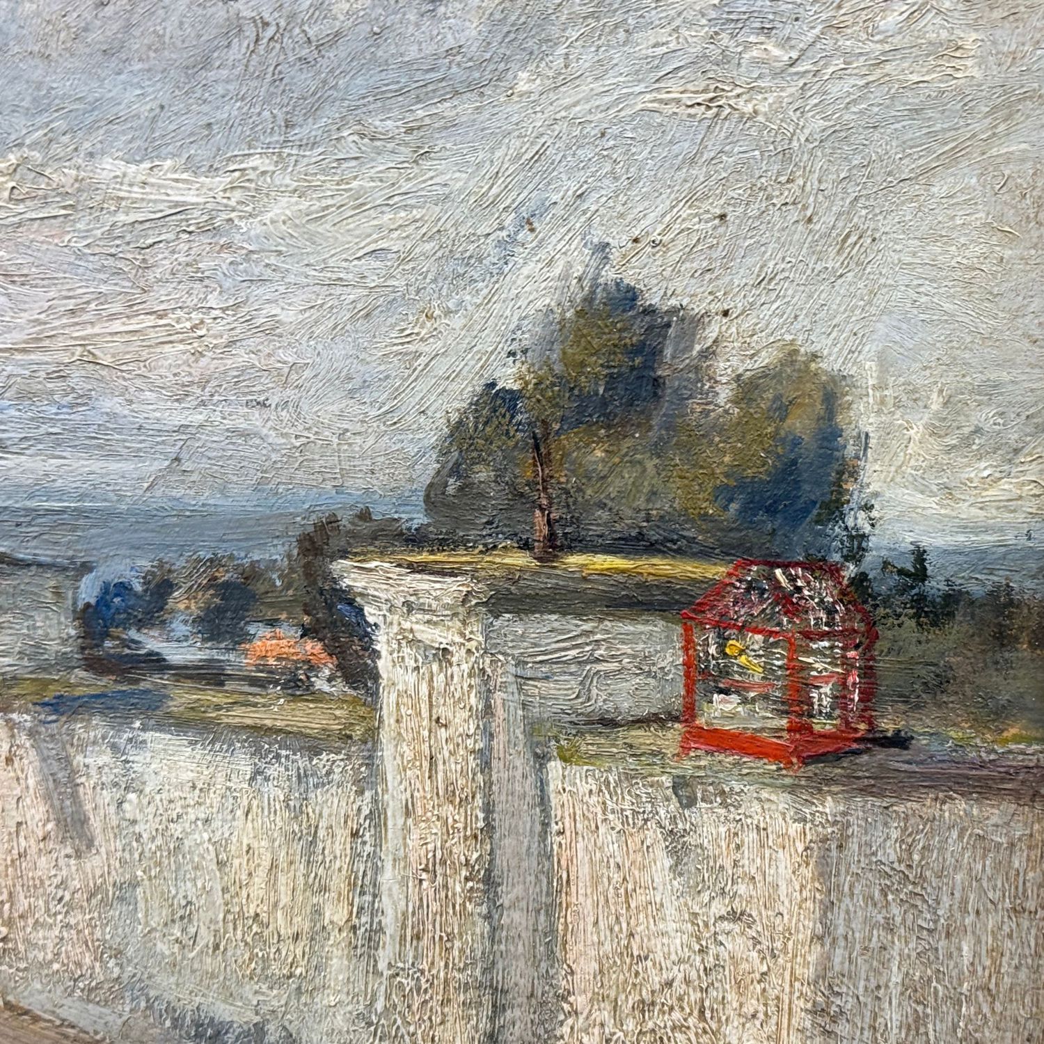 Dipinto olio su tavola, periodo prima metà del XX secolo scuola Napoletana, raffigurante Terrazza ad Ischia.