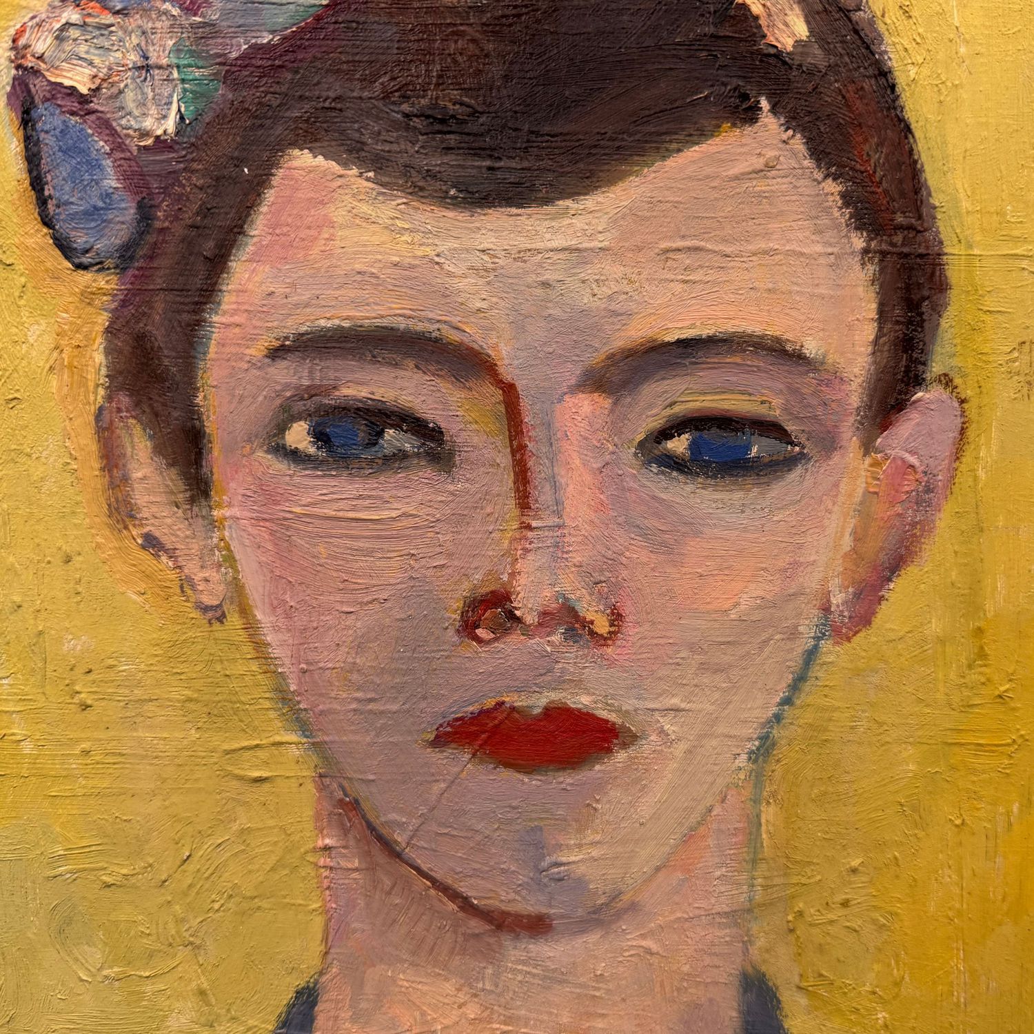 Dipinto olio su pannello, periodo XX secolo scuola Italiana, raffigurante Ritratto di giovane donna.