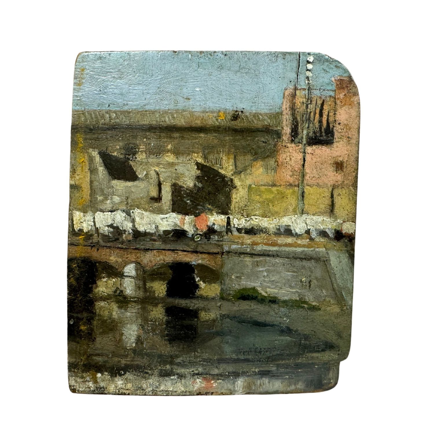 Piccolo dipinto olio su tavola, bozzetto d'autore, periodo inizio XX secolo scuola Italiana, raffigurante Paesaggio.