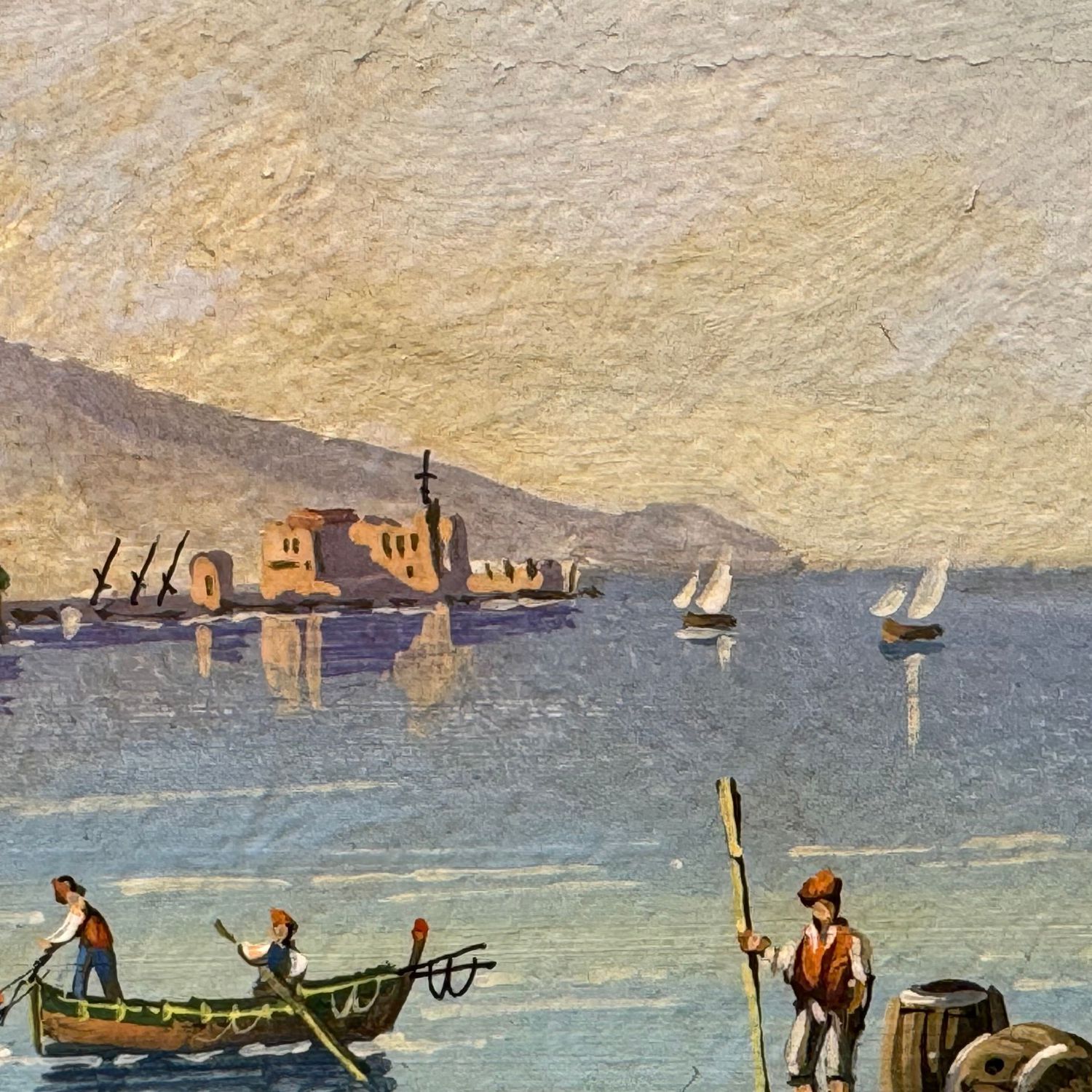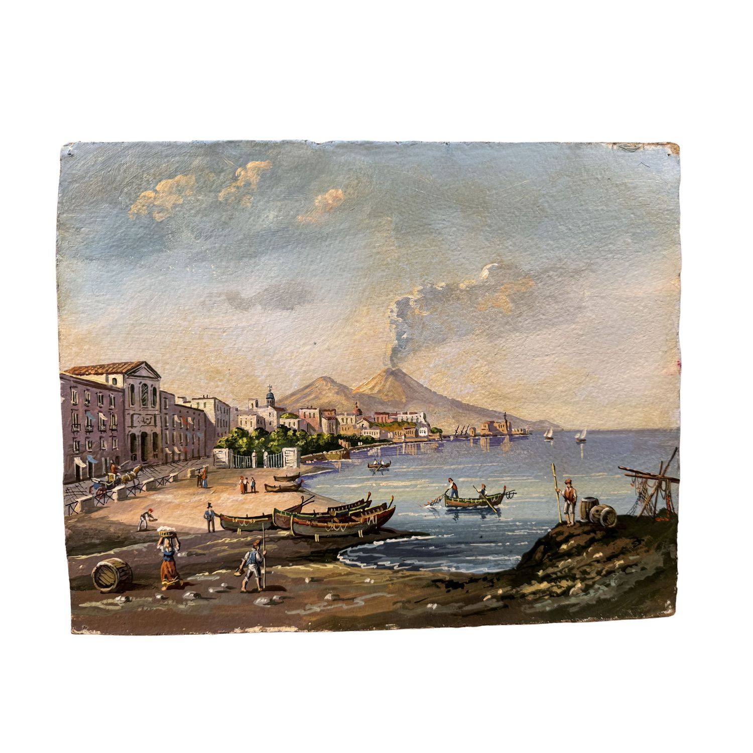 Dipinto guazzo (tempera su cartoncino), periodo inizio XX secolo scuola Italiana, raffigurante Golfo di Napoli.