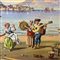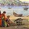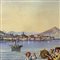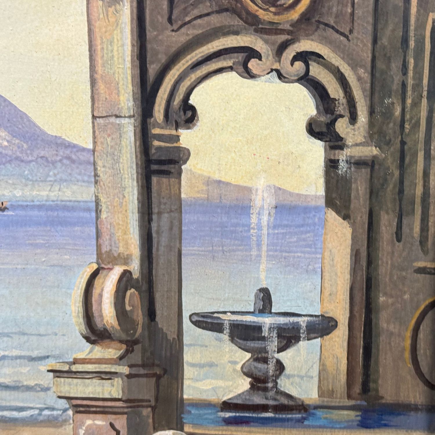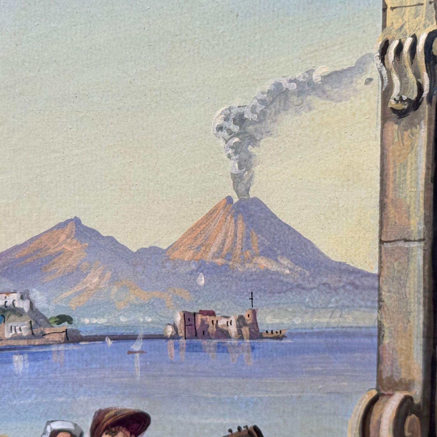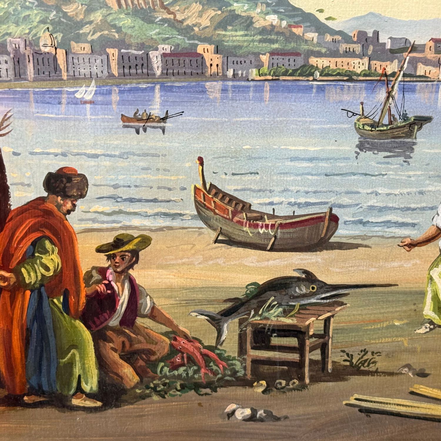 Dipinto guazzo (tempera su carta), periodo inizio XX secolo scuola napoletana, raffigurante Veduta di Napoli e scena popolare.