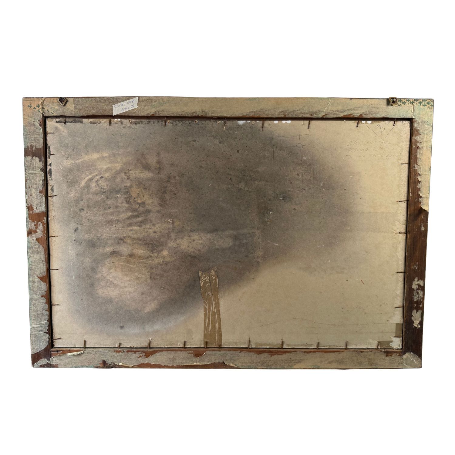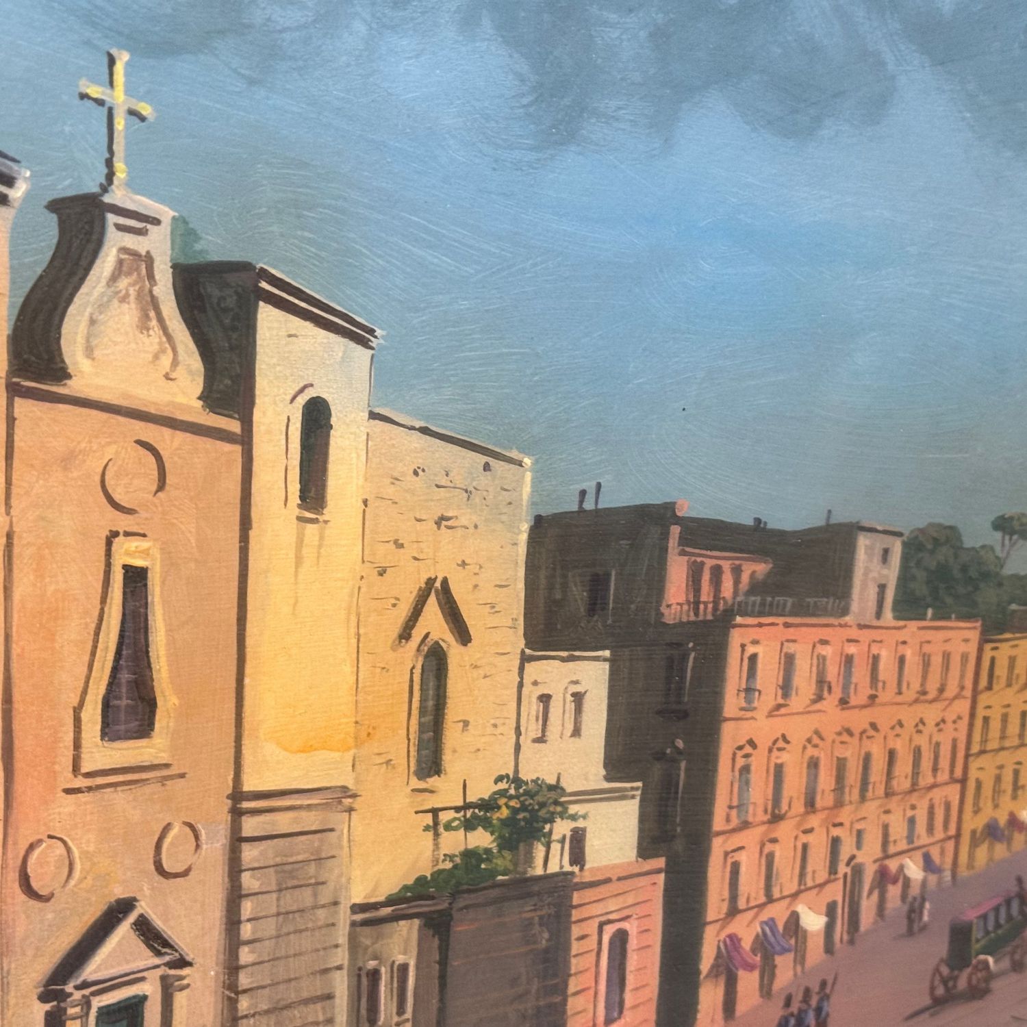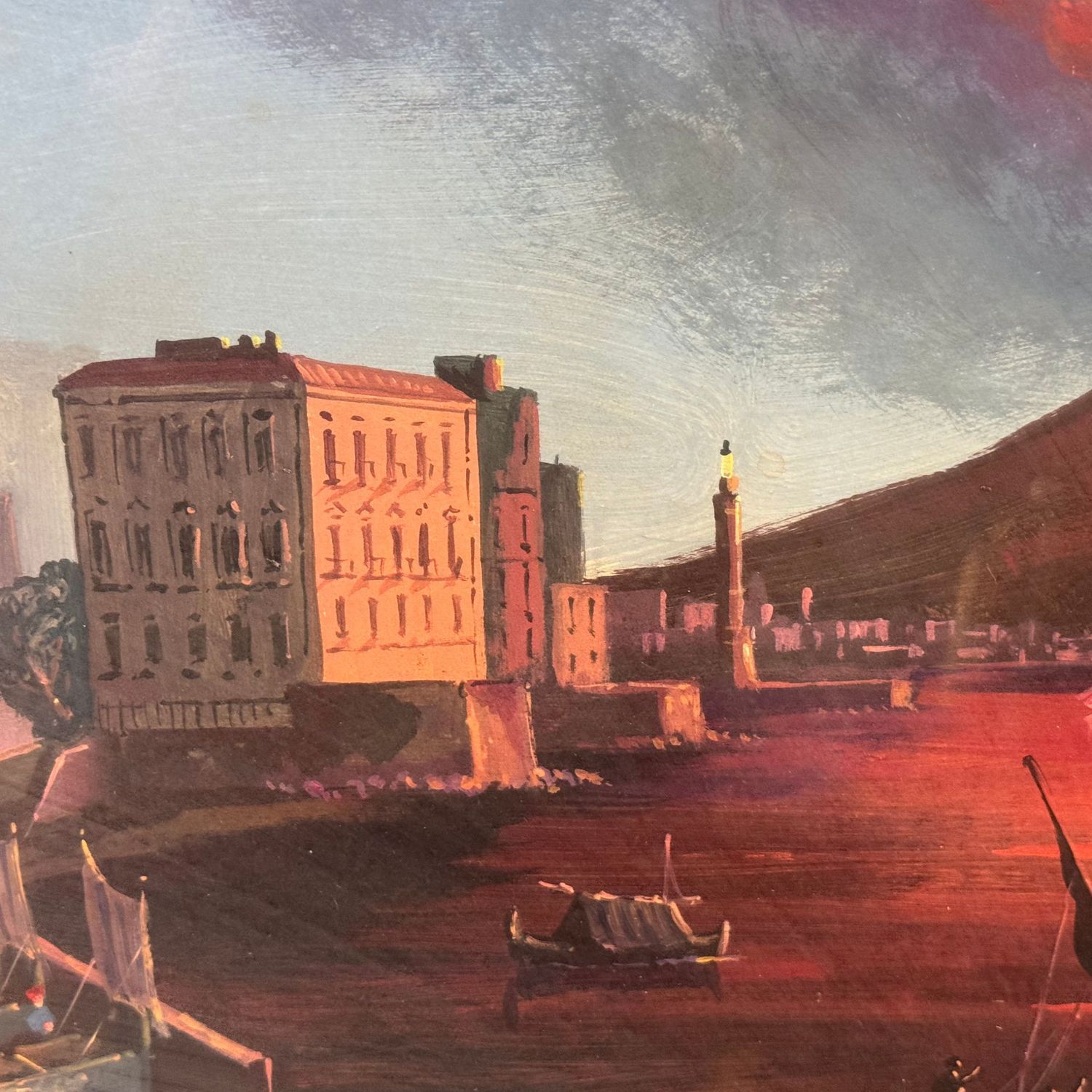 Dipinto guazzo (tempera su cartoncino), periodo inizio XX secolo scuola Italiana, raffigurante Eruzione del Vesuvio vista da Santa Lucia.