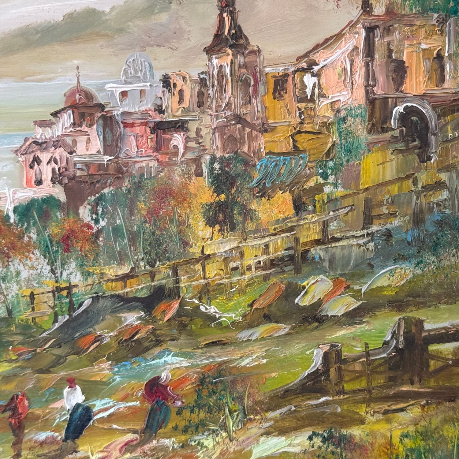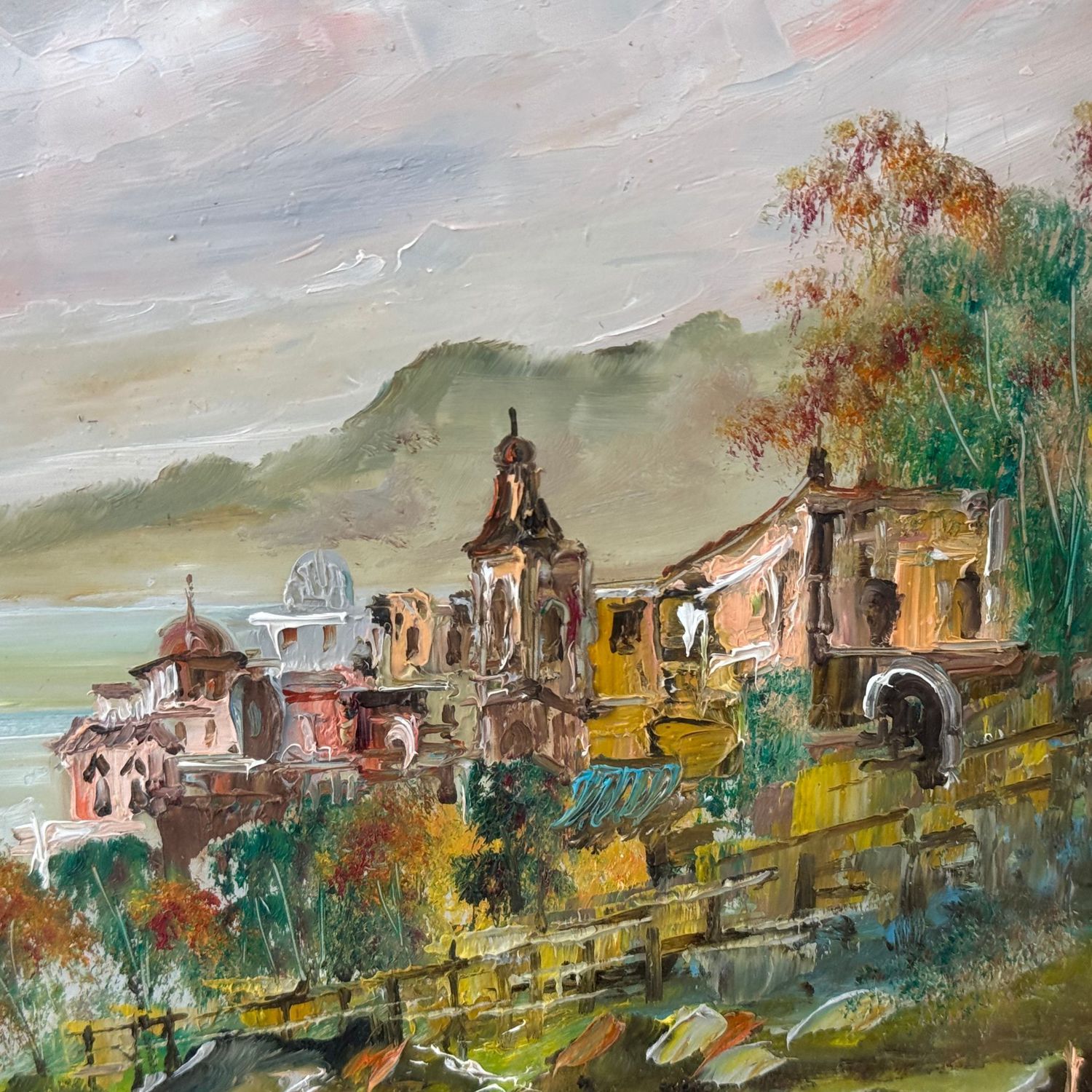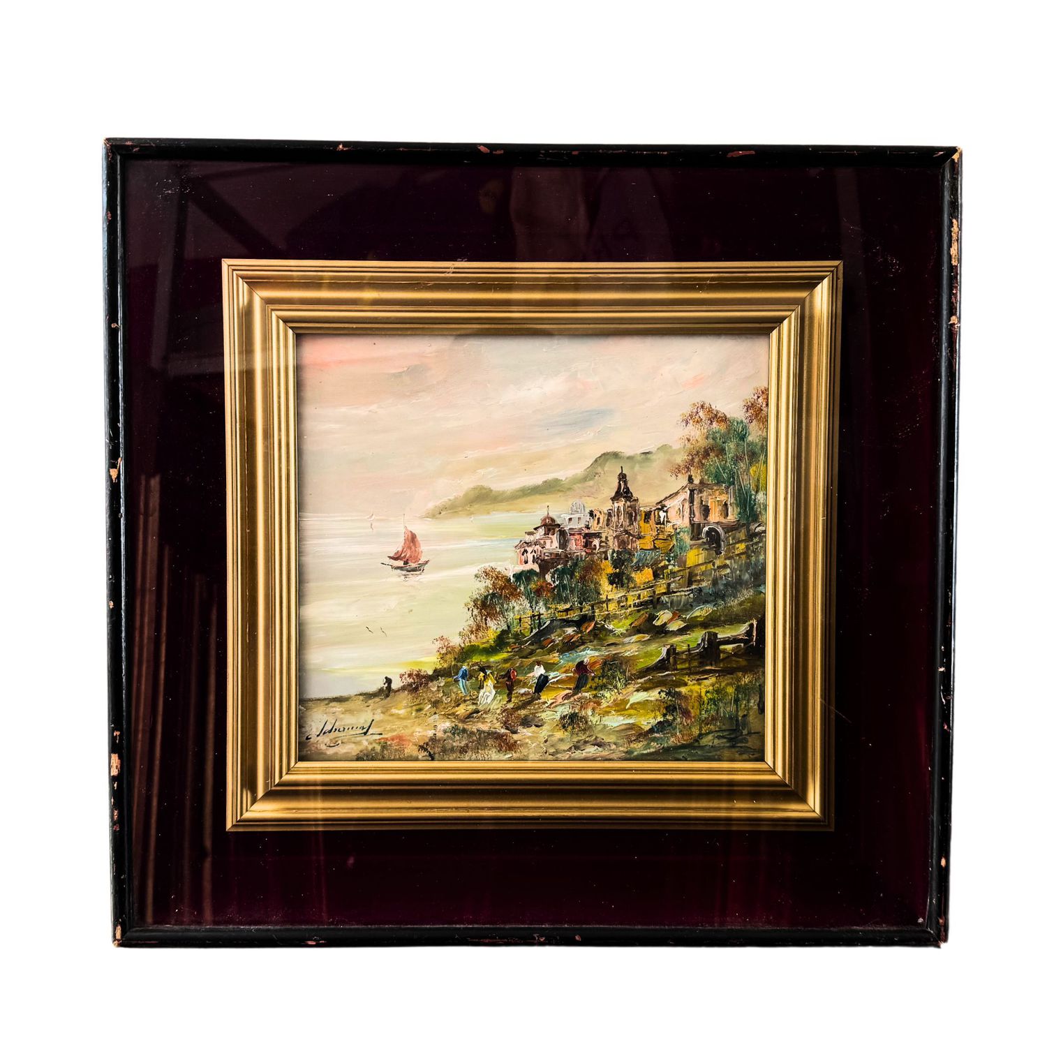 Dipinto olio su pannello, periodo XX secolo scuola Italiana, raffigurante Paesaggio di Costiera.