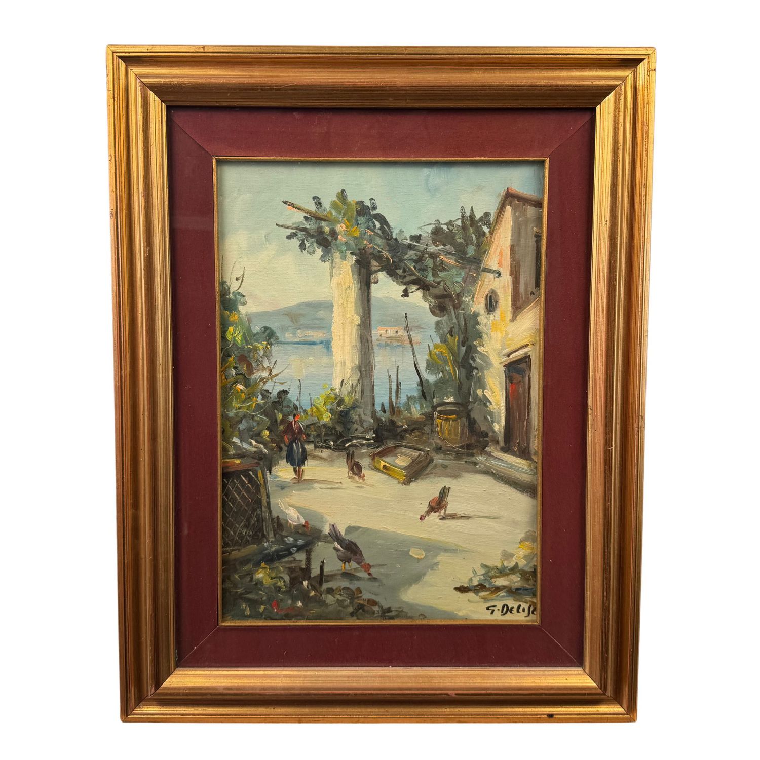 Dipinto olio su tela, periodo XX secolo scuola Italiana, raffigurante Terrazza sul golfo.