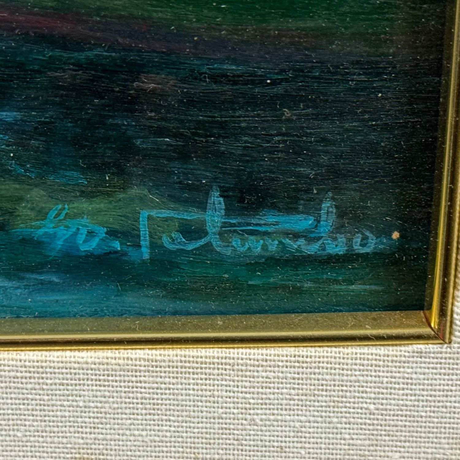 Dipinto olio su tela, periodo XX secolo scuola Italiana, raffigurante Scorcio di marina all'alba.