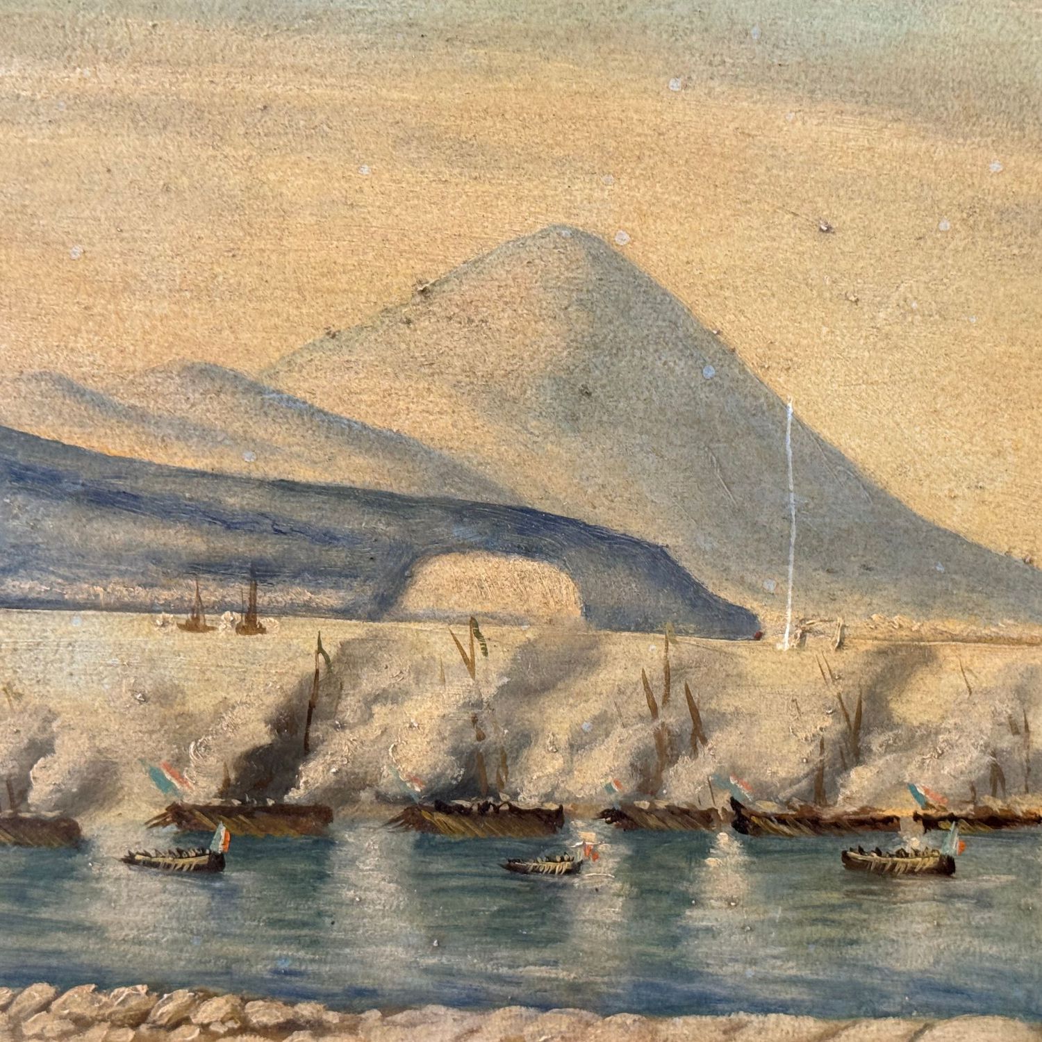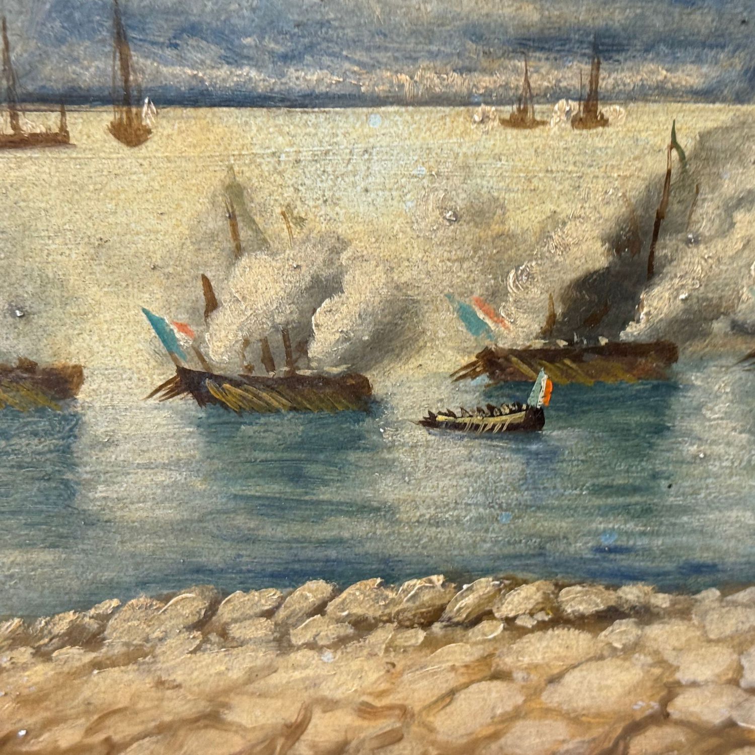 Dipinto olio su tavola, periodo XIX/XX secolo scuola Italiana, raffigurante La battaglia nel canale di Procida