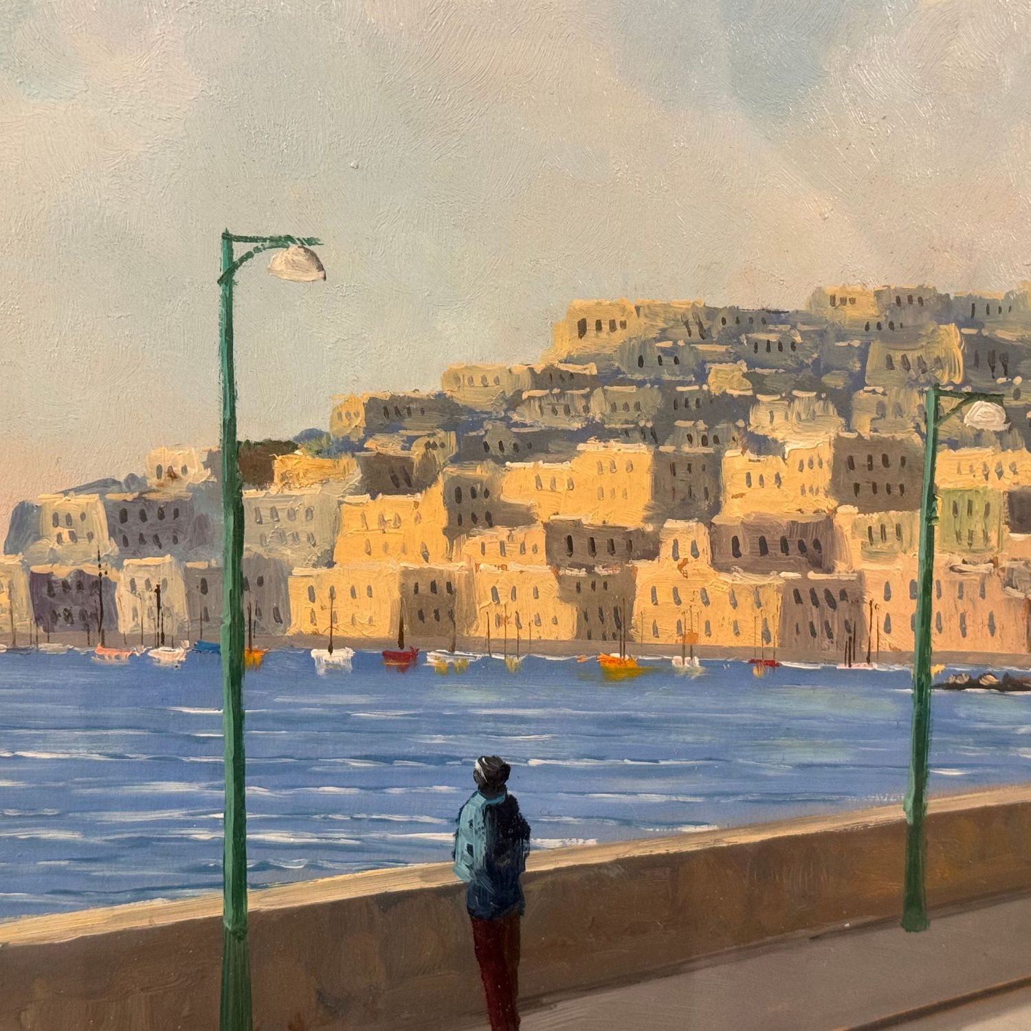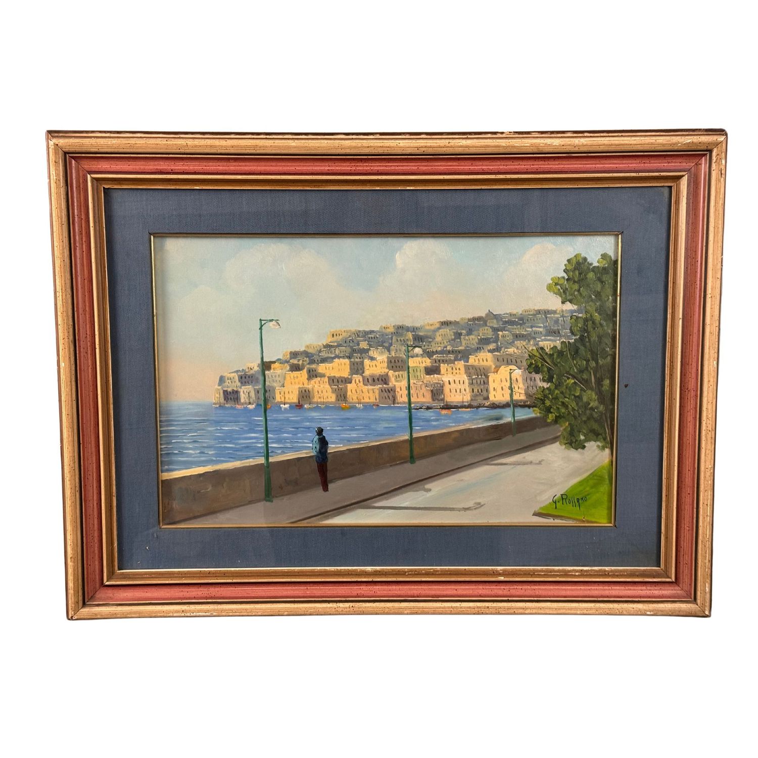 Dipinto olio su tavola, periodo XX secolo scuola Italiana, raffigurante Lungomare di Mergellina.