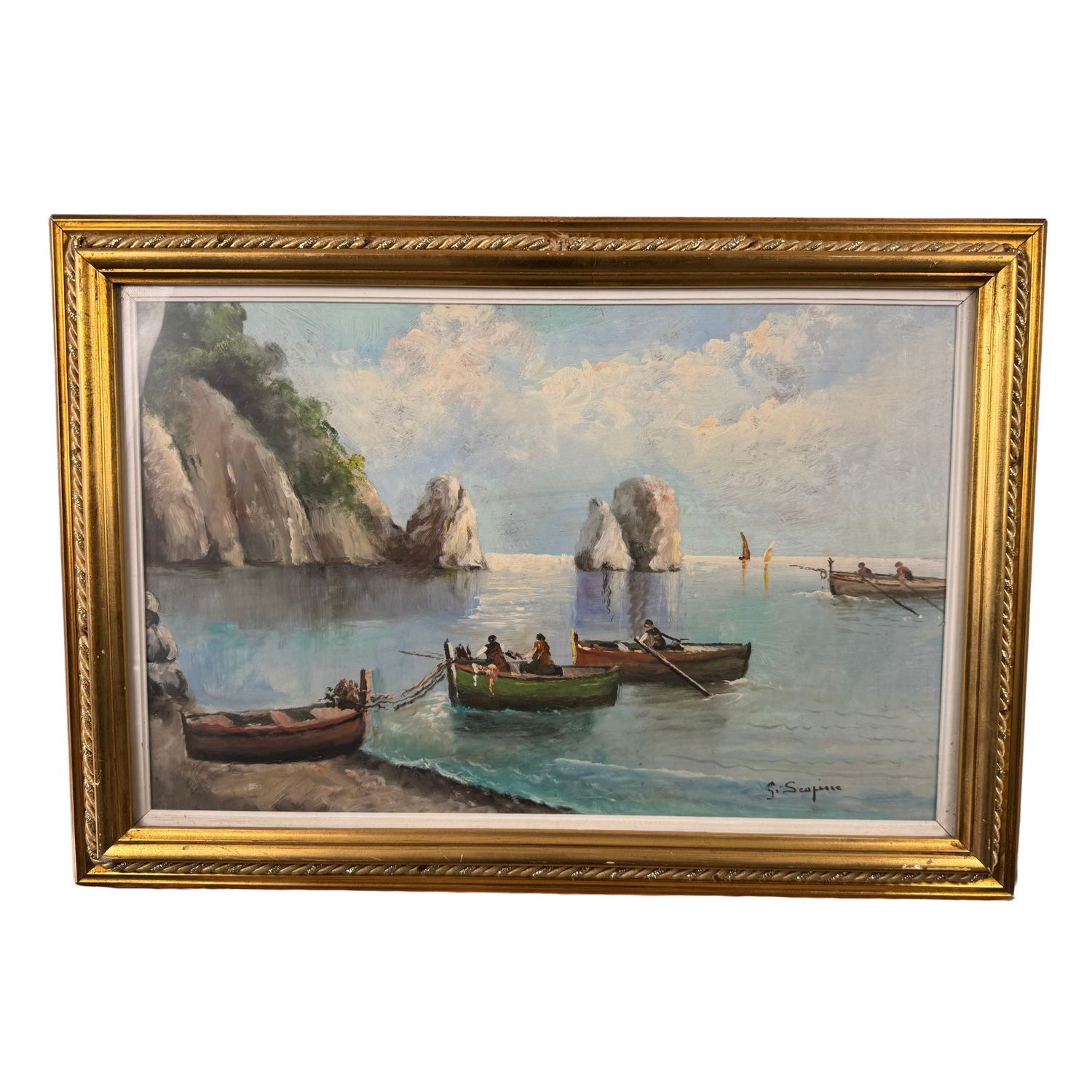 Dipinto olio su pannello, periodo XX secolo scuola Italiana, raffigurante Capri.