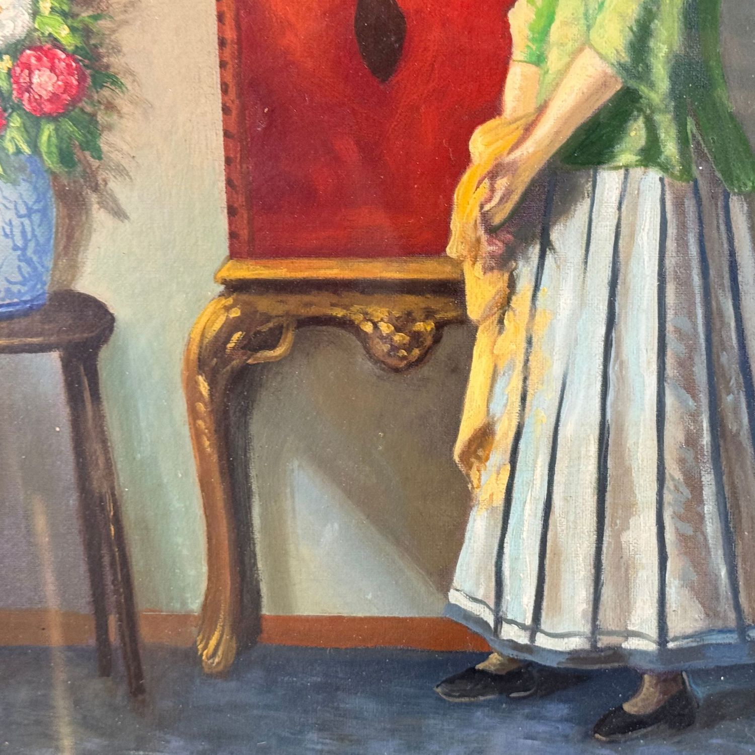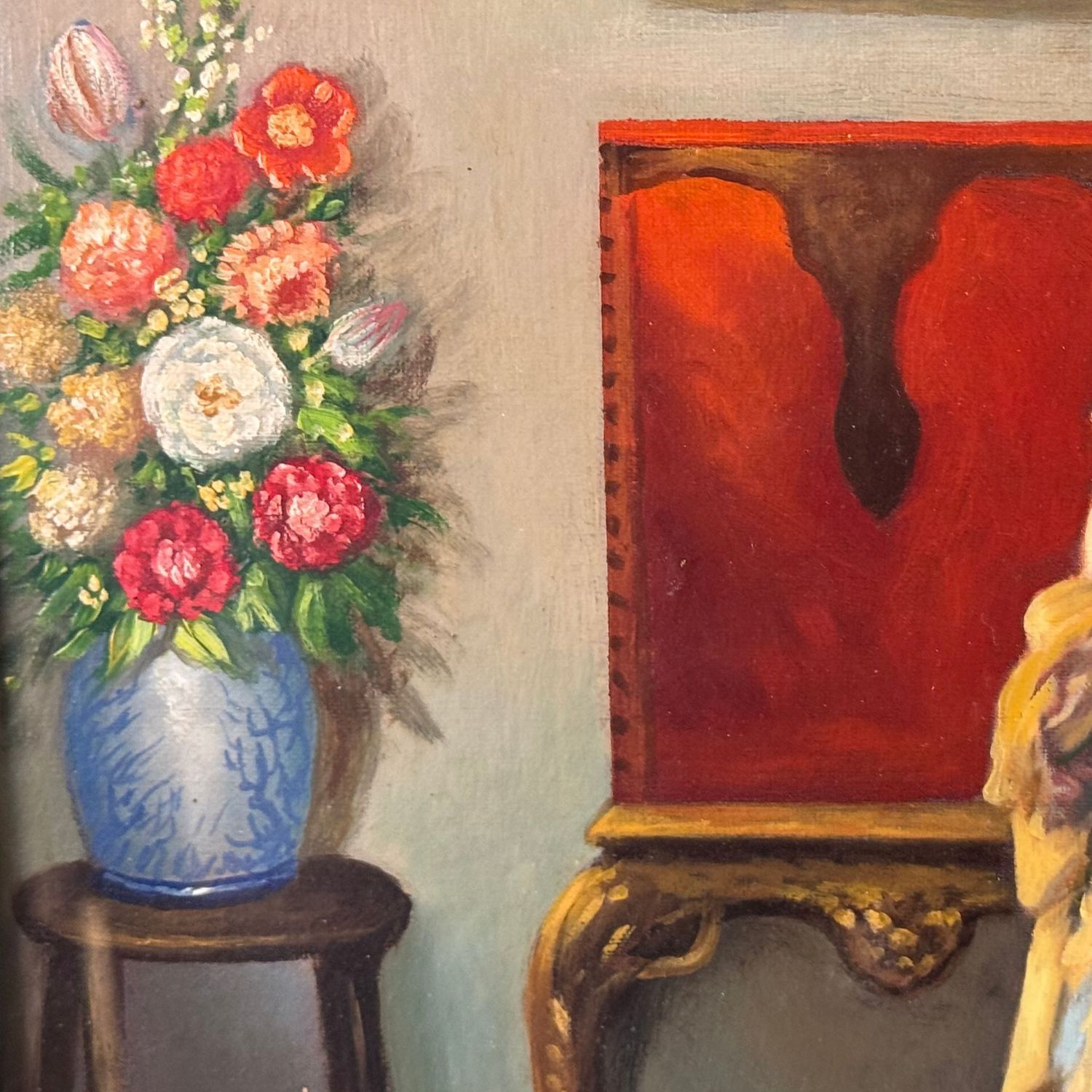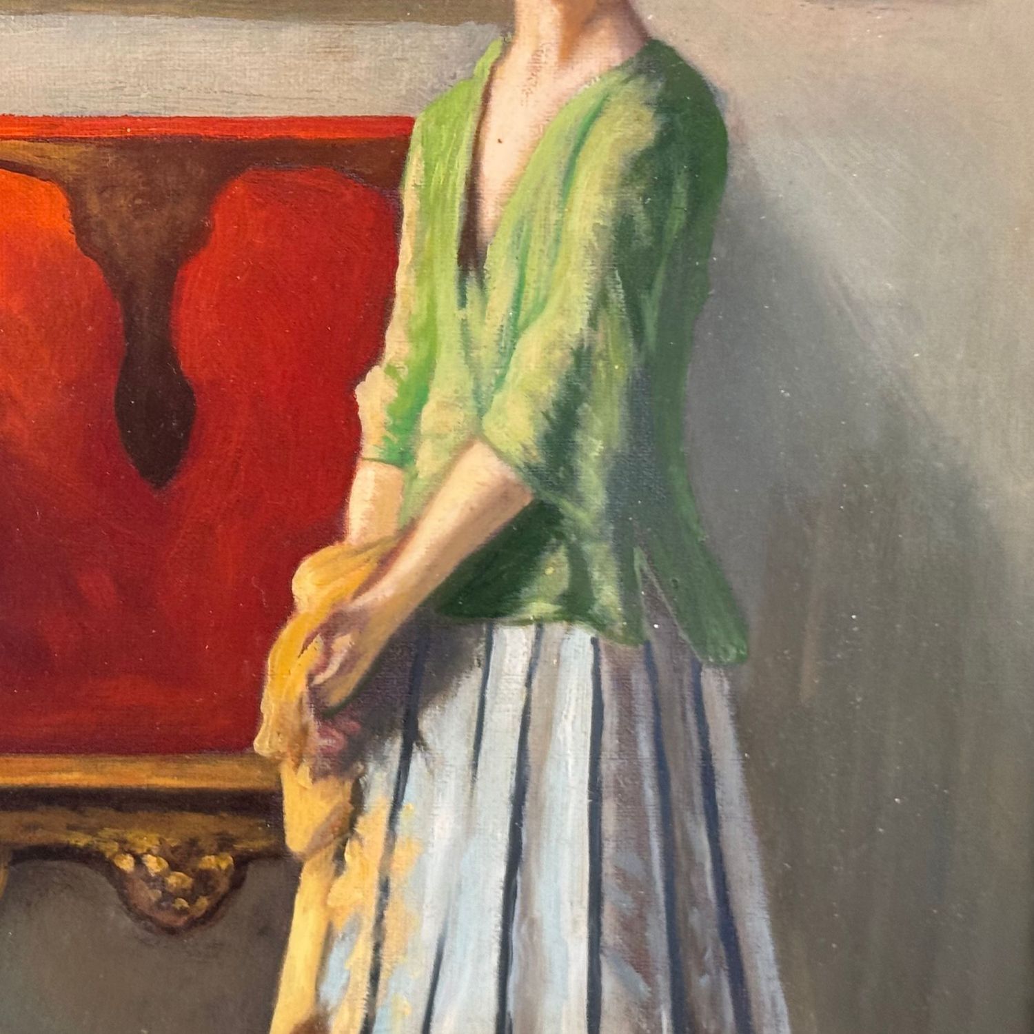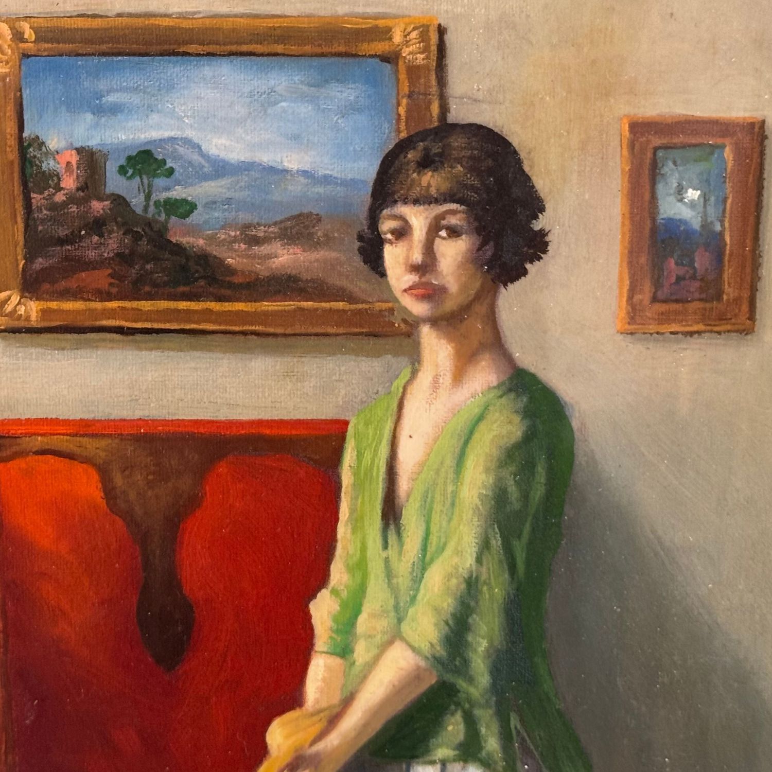Dipinto olio su pannello, periodo XX secolo scuola Italiana, raffigurante Ritratto di donna in un interno. Dimensioni interno cornice: 30x40 cm. Dimensioni compreso cornice: 38x47 cm. Reca firma in basso a destra di difficile lettura. Opera in buone condizioni.