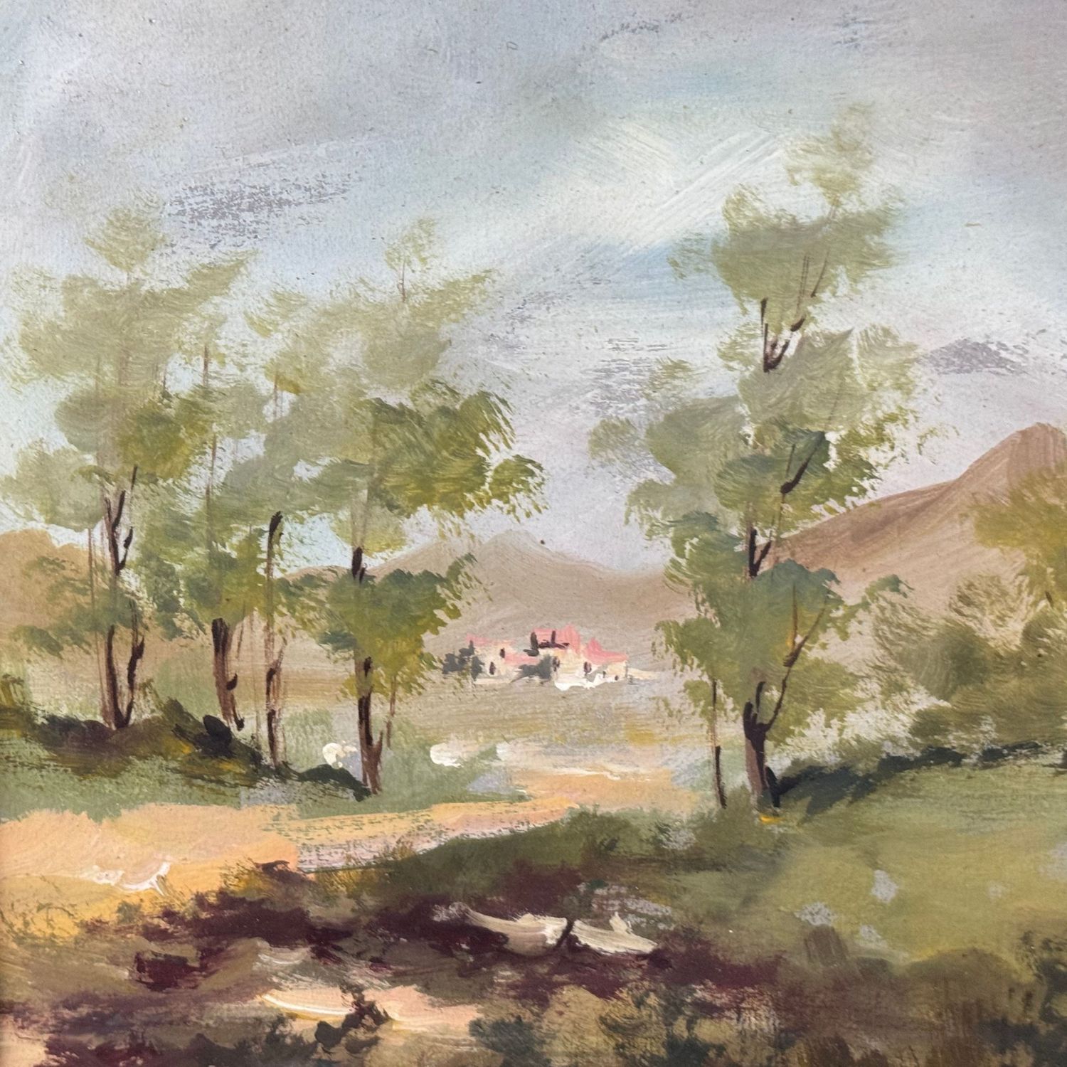Dipinto olio su pannello, periodo XX secolo scuola Italiana, raffigurante Strada di campagna. Dimensioni interno cornice: 26x22 cm. Dimensioni compreso cornice: 43x38 cm. Reca firma in basso a destra di difficile lettura. Opera in buone condizioni.