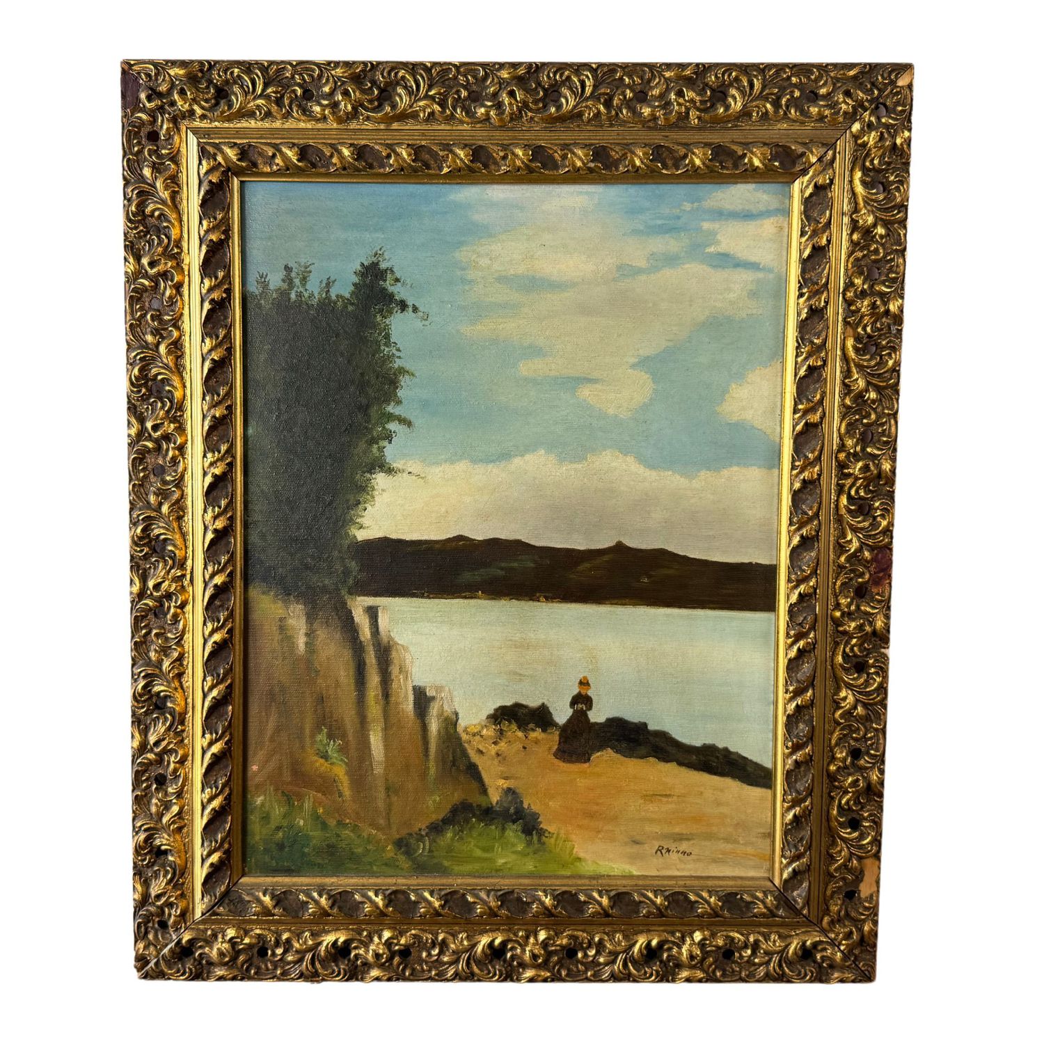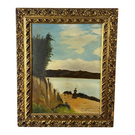 Dipinto olio su tela, periodo XX secolo scuola Italiana, raffigurante Paesaggio. Dimensioni interno cornice: 35x46 cm. Dimensioni compreso cornice: 49x59 cm. Reca firma in basso a destra non identificata. Opera in buone condizioni con lievi segni di vissuto come da foto allegate.