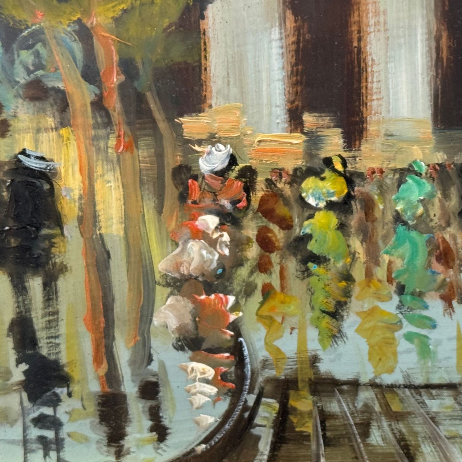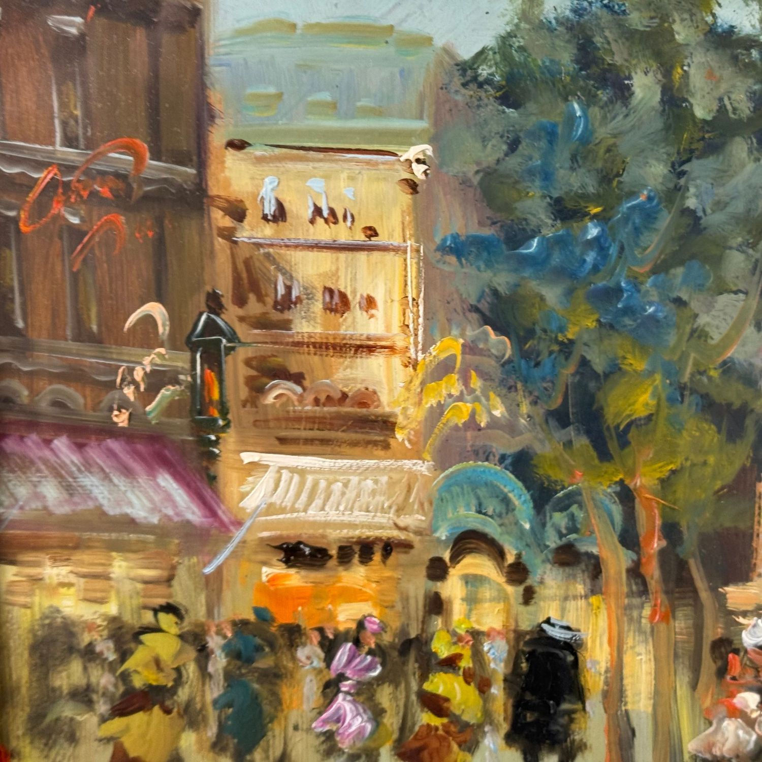 Dipinto olio su pannello, periodo XX secolo scuola italiana, raffigurante Strada a Parigi. Dimensioni interno cornice: 30x40 cm. Dimensioni compreso cornice: 54x44 cm. Reca firma in basso a destra da Pellecchia. Opera in buone condizioni.