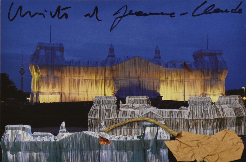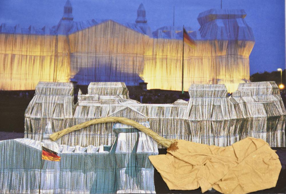 Christo and Jeanne-Claude WRAPPED REICHSTAG, BERLIN collage e corda su...