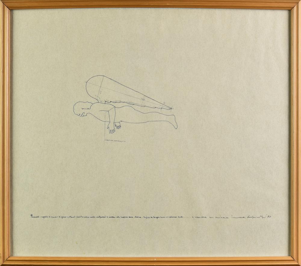 Luigi Mainolfi PROGETTO, 1977 tecnica mista su carta, cm 30x34 firma, data e...