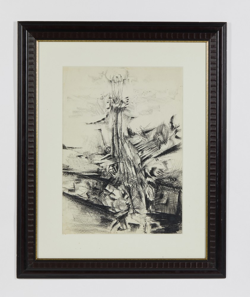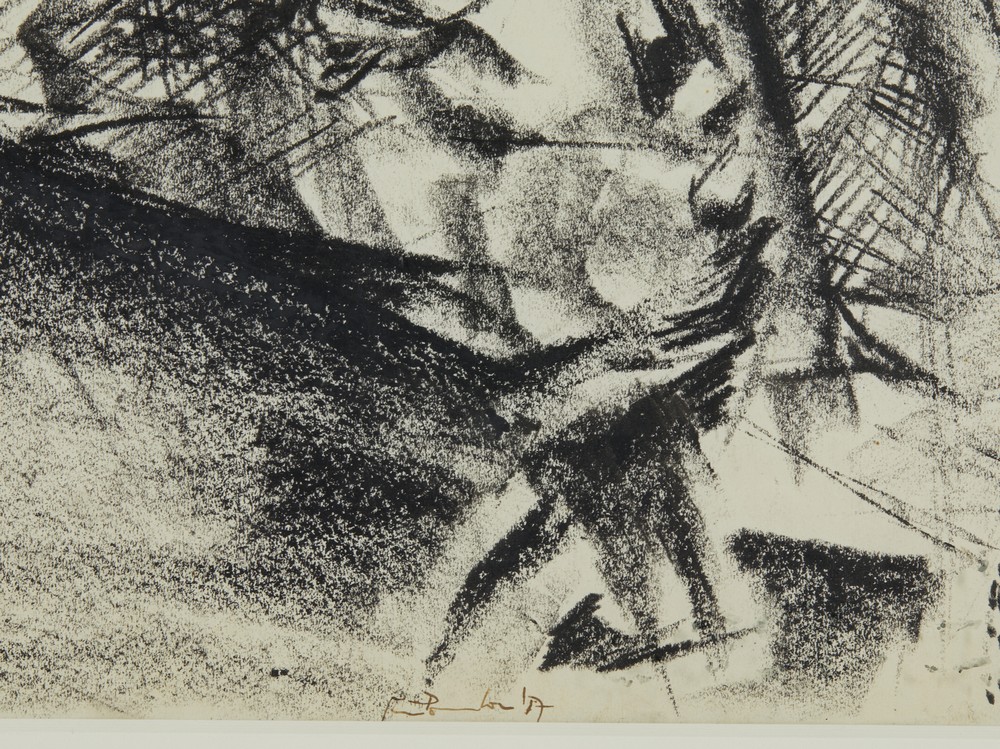 POMODORO GIO' (1930 - 2002) SENZA TITOLO, 1957. Carboncino su carta. Cm 46,50 x 64,00. firma e data