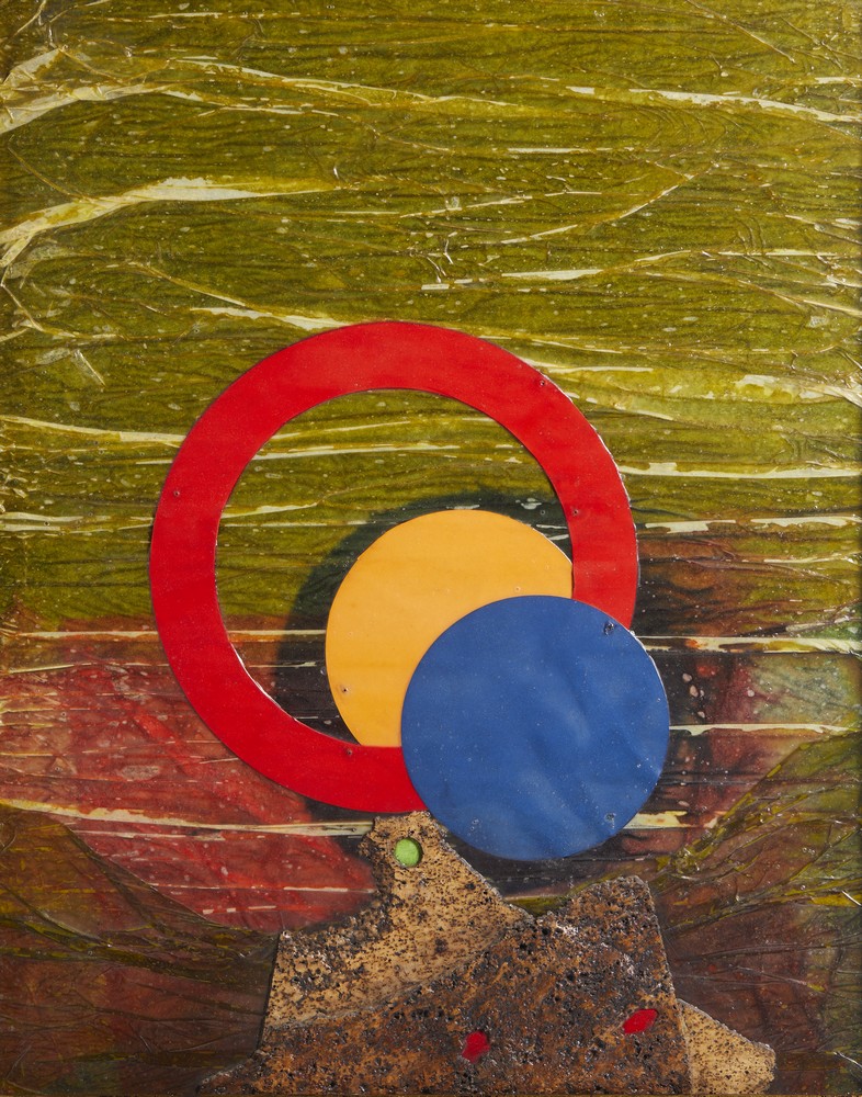 CRIPPA ROBERTO GAETANO (1921 - 1972) SOLEIL (ANNI '70). Collage polmaterico su tavola . Cm 81,00 x 65,00. sul retro: firma