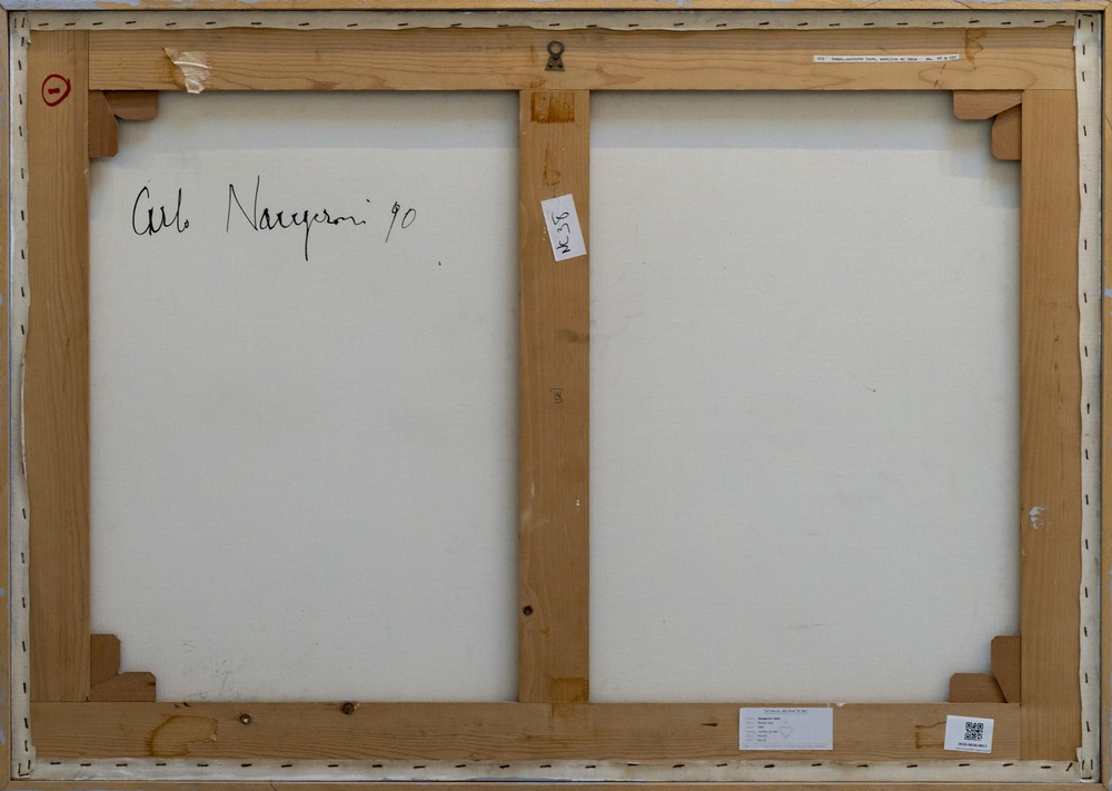 NANGERONI CARLO (1922 - 2018) SENZA TITOLO, 1990. acrilico su tela. Cm 123,00 x 87,00. sul retro: firma e data; etichetta Valente Arte Contemporanea, Finale ligure.
