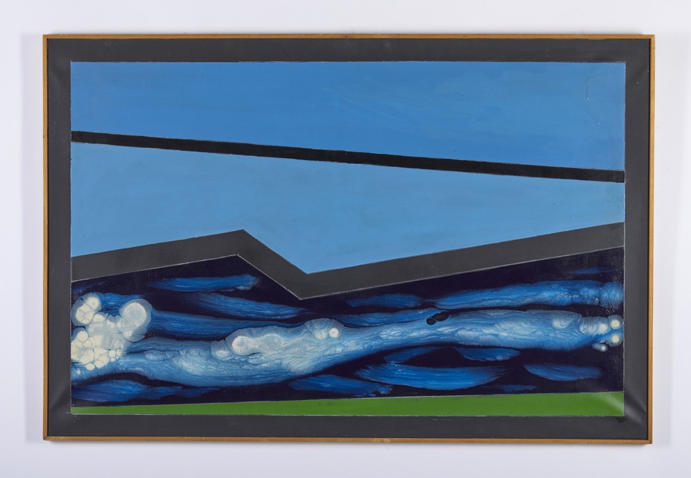 ANGELI FRANCO (1935 - 1988) PAESAGGIO GEOMETRICO, 1984. Tecnica mista su tela. Cm 120,00 x 80,00. sul retro: firma, data ed etichetta Studio Oggetto, Caserta.